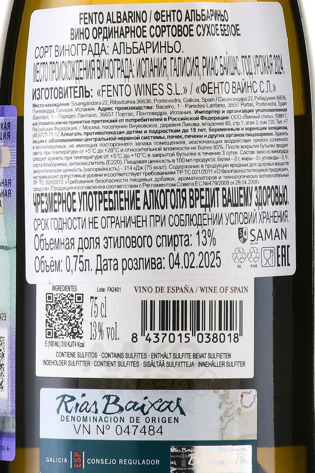 Fento Albarino - вино Фенто Альбариньо 0.75 л белое сухое