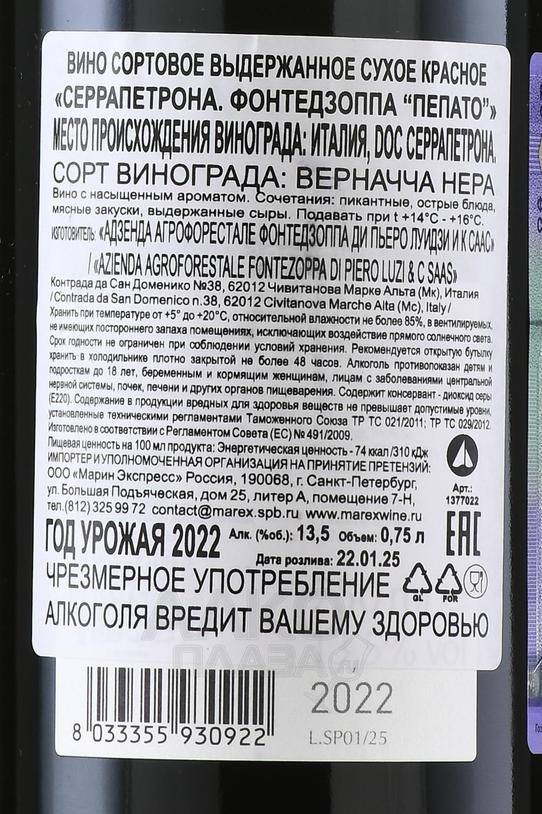 Красное сухое вино Fontezoppa Pepato Biologico 0,75 л происходит из региона Марке в центральной части Италии. Хозяйство расположено в холмистой зоне недалеко от Адриатического побережья. Здесь преобладают глинисто-известковые почвы с включениями песка. Климат — умеренный, с заметным влиянием моря и выраженными суточными перепадами температур. Эти условия способствуют равномерному созреванию винограда, сохранению кислотности и формированию пряного профиля. Для производства используют органическое сырьё без применения синтетических агрохимикатов. Ферментация проходит в стальных ёмкостях при контролируемой температуре. Такой подход позволяет сохранить сортовой характер и чистоту аромата. Выдержка также осуществляется в стальных резервуарах, без контакта с древесиной.