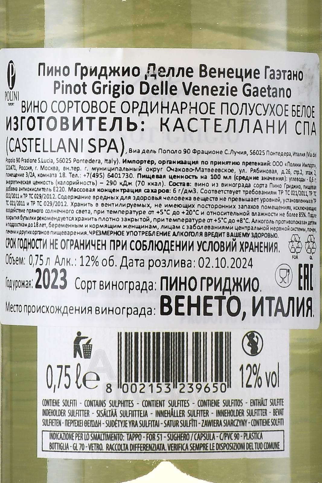 Белое полусухое вино Gaetano Pinot Grigio delle Venezie 0,75 л производится на севере Италии, в зоне DOC, охватывающей регионы Венето, Фриули — Венеция-Джулия и Трентино-Альто-Адидже. Сырьё — ягоды Пино Гриджио, выращиваемые на возвышенностях с каменистыми и известковыми почвами. Винификация включает мягкое прессование и ферментацию при контролируемой температуре, без выдержки в дубе, чтобы сохранить свежесть и натуральный характер сорта. Моносортовой образец отличается чистым стилем с акцентом на яркость и гармонию.