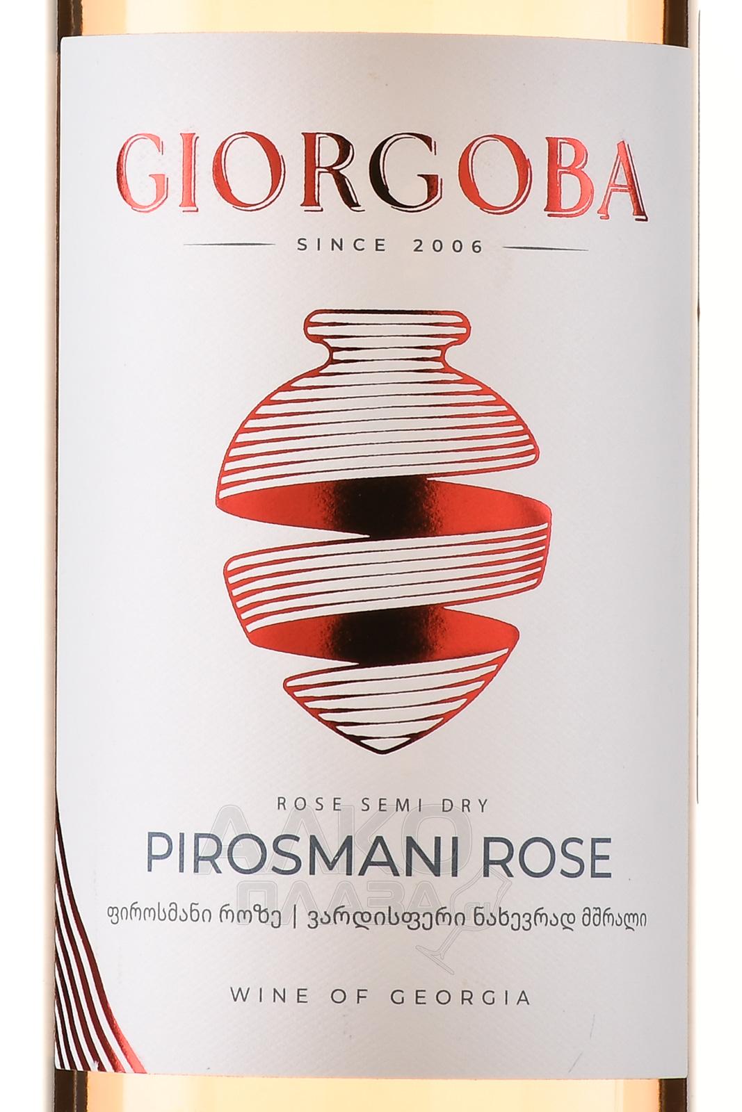 Розовое полусухое вино Giorgoba Pirosmani Rose 0,75 л названо в честь знаменитого грузинского художника Нико Пиросмани. Это уникальный бленд из красного и белого автохтонов, которые выращиваются на территории Алазанской долины. Собранный на пике спелости виноград подвергается гребнеотделению и охлаждению, затем мягко прессуется. Сусло оставляют настаиваться на мезге на 8 часов, затем отделяют от осадка и ферментируют со специальными дрожжами в стальных терморегулируемых резервуарах. Вино было выдержано в стали и сохранило очарование молодости и свежести.