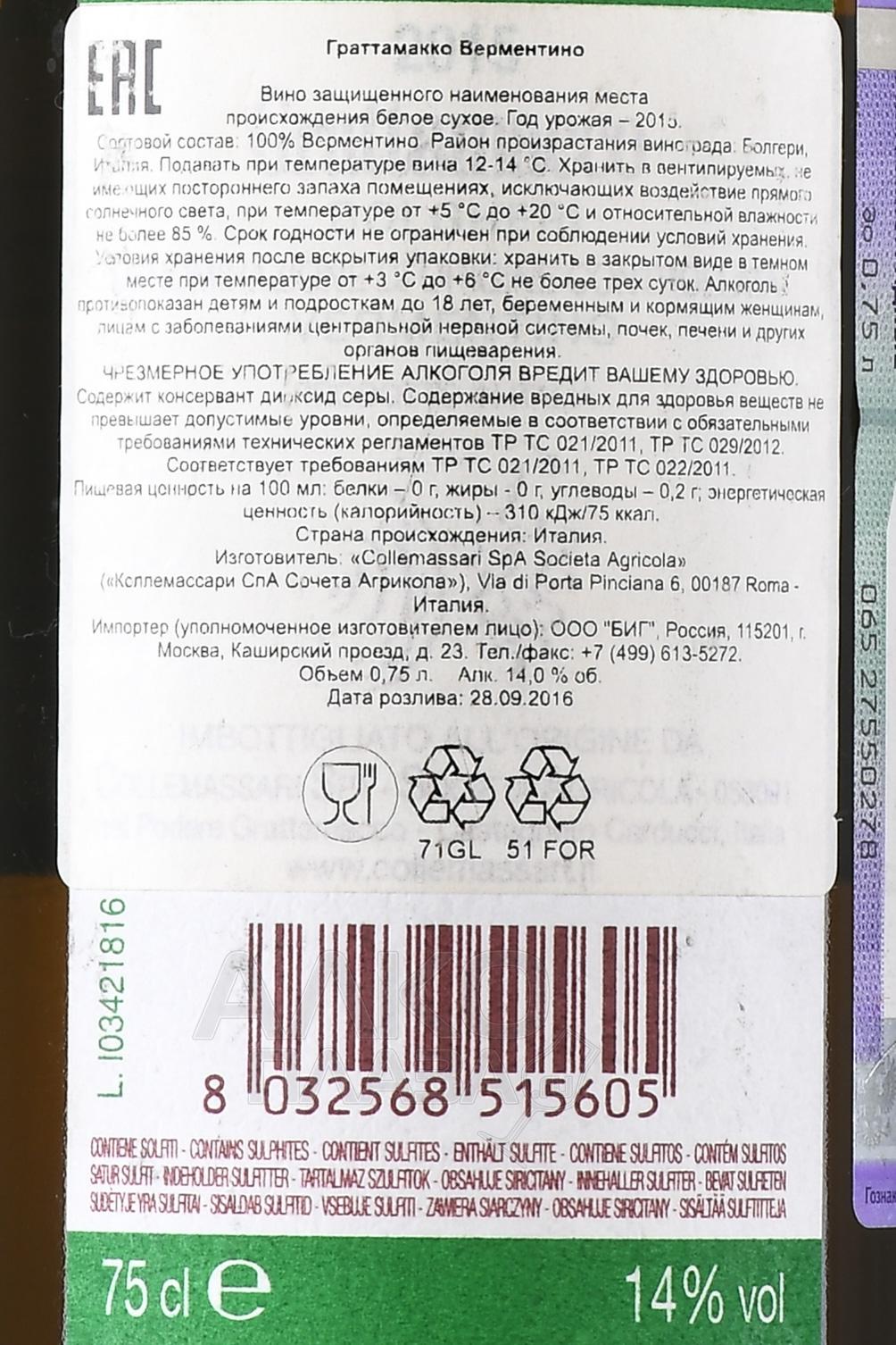 Grattamacco Vermentino - вино Граттамакко Верментино 0.75 л белое сухое