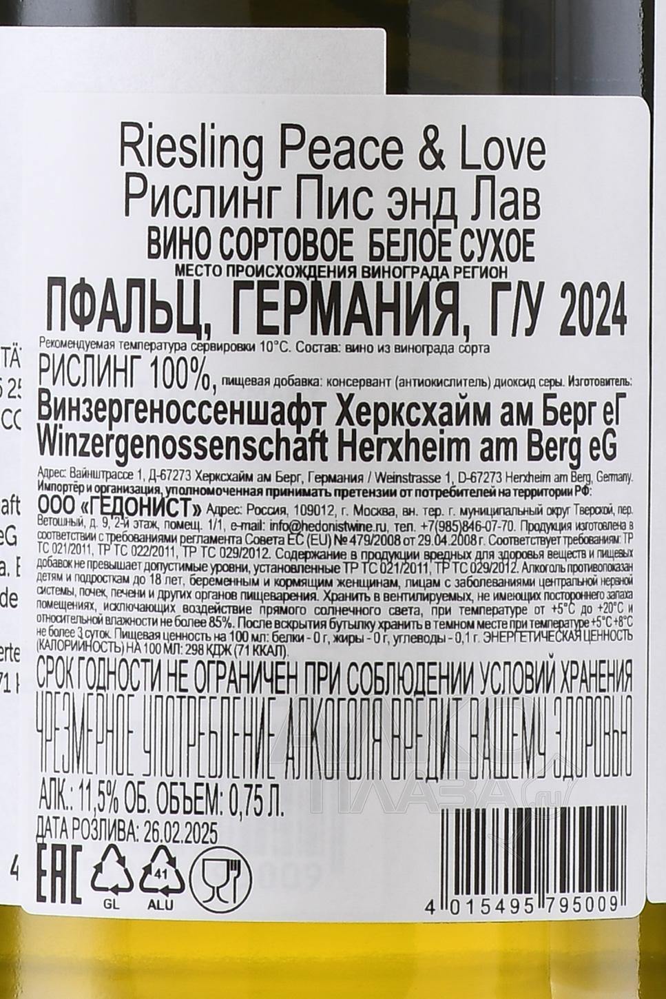 Белое сухое вино Herxheim am Berg Peace & Love Riesling 0,75 л создано в традициях Пфальца, одного из старейших винодельческих регионов Германии. Виноградники расположены на склонах с известняковыми и песчано-слоистыми почвами, которые придают вину минеральность и свежесть. Климат здесь мягкий и солнечный, что помогает ягодам накапливать баланс сахара и кислотности. Урожай собирается вручную, а ферментация проходит в стальных резервуарах при контролируемой температуре, чтобы сохранить фруктовую чистоту аромата. Выдержка проводится на осадке, что добавляет структуру и глубину вкусу. Этот Рислинг отличается особой концепцией — этикетка с символами мира и любви подчеркивает философию легкости и радости, а само вино получило положительные отзывы за гармоничное сочетание свежести и элегантности.