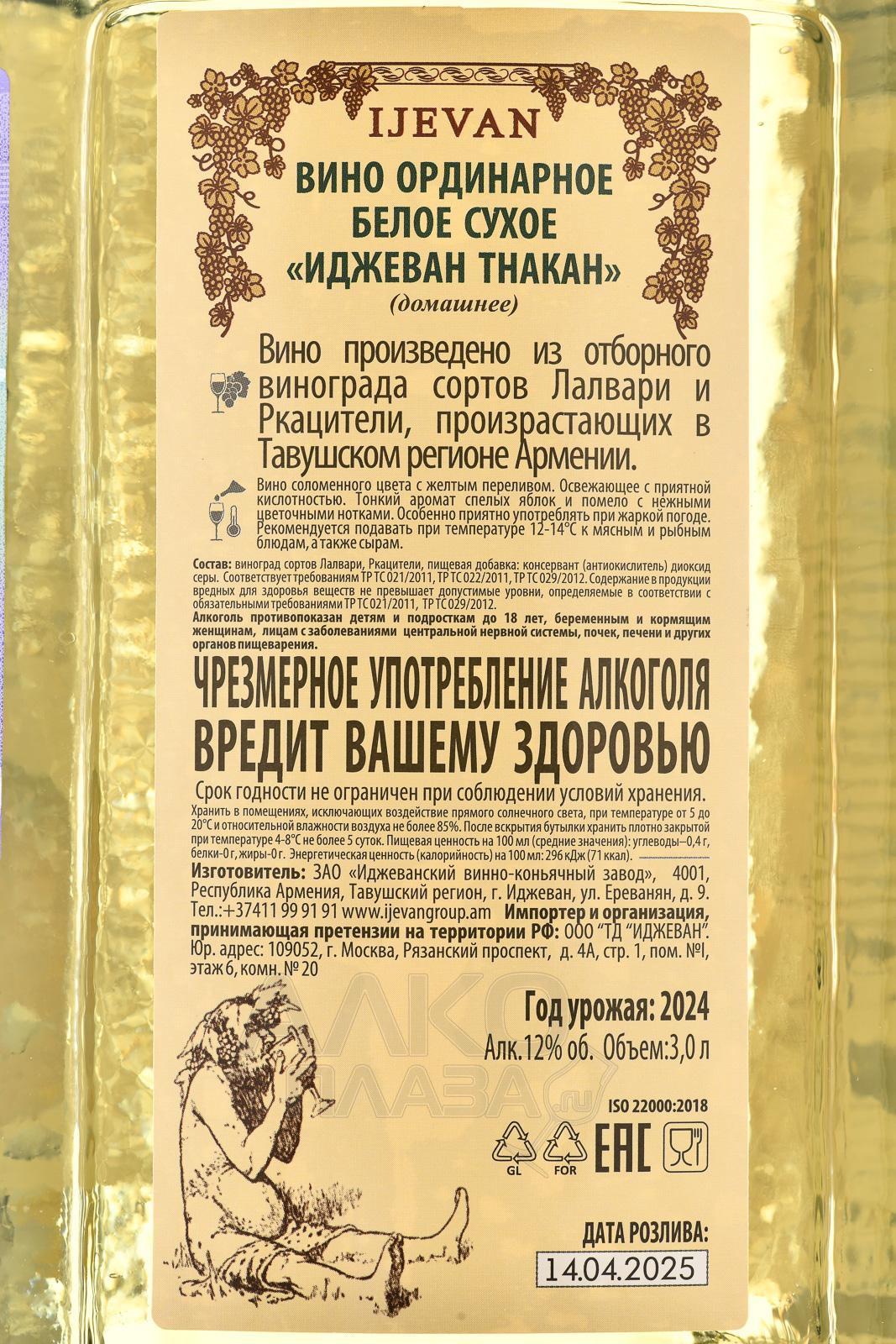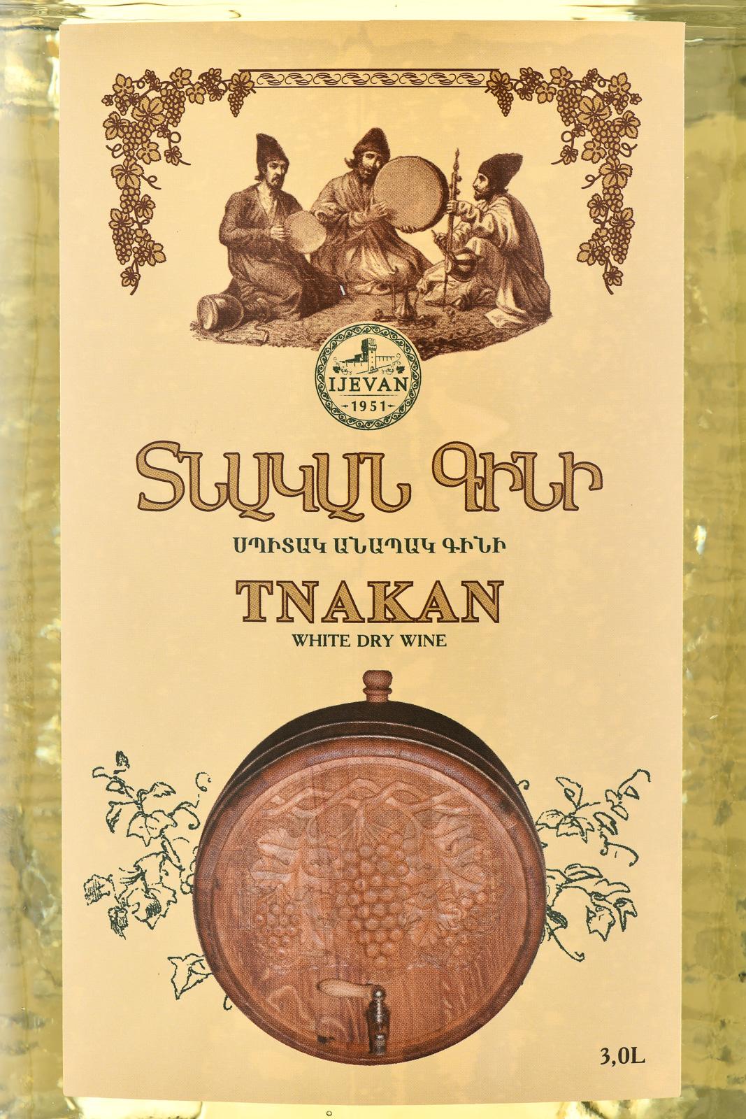 Ijevan Tnakan - вино Иджеван Тнакан 3 л белое сухое в п/у