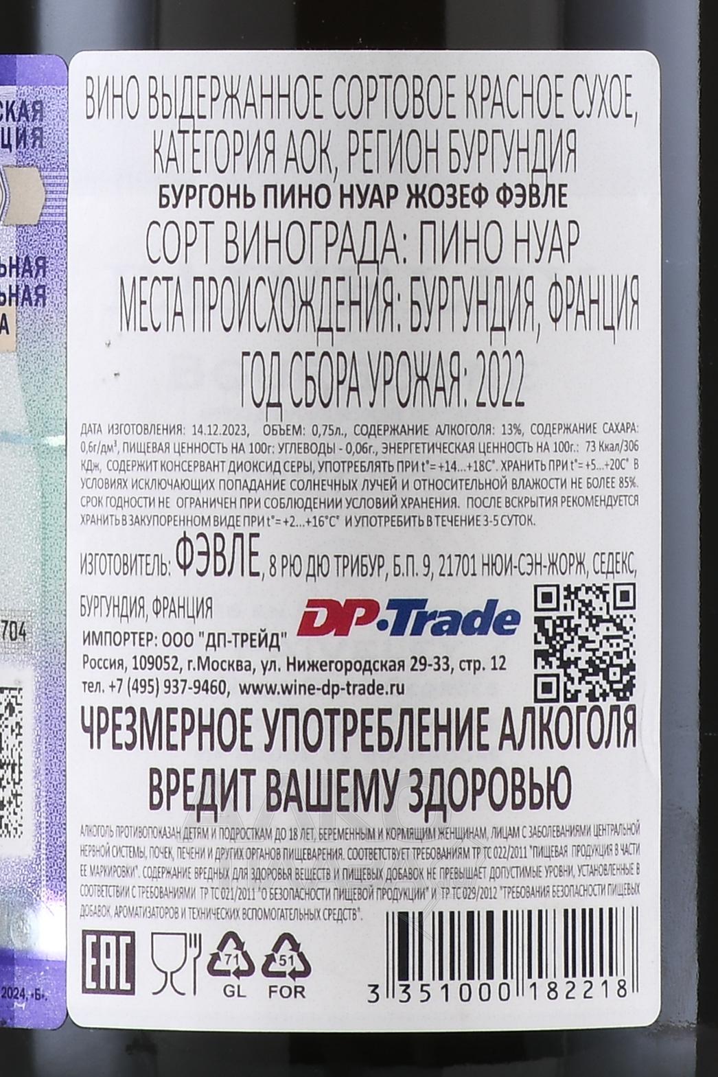 Joseph Faiveley Pinot Noir Bourgogne - вино Жозеф Фэвле Бургонь Пино Нуар 0.75 л красное сухое