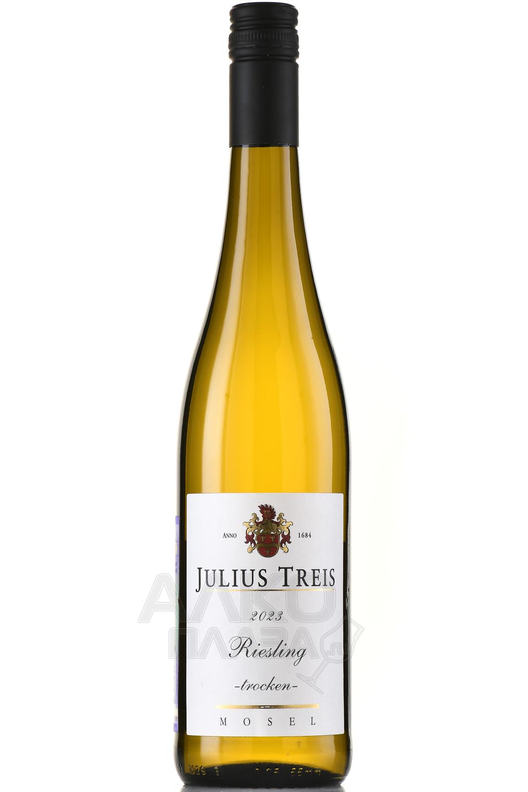 Белое полусухое вино Julius Treis Riesling Mosel 0,75 л крепостью 13,5 процента состоит из винограда Германии, который собрали на просторах региона Мозель в течение одного года. Ягоды вырастили на плантациях с преобладающими песчаными и сланцевыми породами, где культивируют лозы возрастом не более двадцати пяти лет. Урожай прошел мягкий отжим и сбраживание с природными дрожжами в баках с терморегулировкой (13-17 градусов Цельсия). Срок выдержки вина на тонком осадке составил от полугода до семи месяцев.