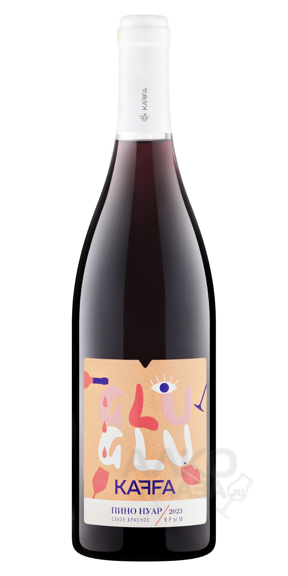Красное сухое вино Kaffa Glu Glu Pinot Noir 0,75 л имеет крымское происхождение. Напиток делают из ягод с собственных виноградников компании, выращиваемых на землях категории ЗГУ в Сакском районе. Тёплый солнечный климат с большим числом солнечных дней, влиянием степных ветров и морских бризов, а также карбонатные и чернозёмные почвы способствуют равномерному созреванию урожаев и формированию яркого ягодного профиля при умеренной кислотности. Название «Каффа» связано с историческим именем Феодосии в период с конца XIII века до 1475 года, когда город находился под властью Генуэзской республики. Вино создано в стиле Glu Glu, представленного лёгкими и питкими красными версиями, которые можно употреблять достаточно охлаждёнными. Ферментация проходила в стальных чанах с контролем температуры. Далее последовали стадии яблочно-молочного брожения и выдержки — также в стали, на протяжении 6 месяцев.