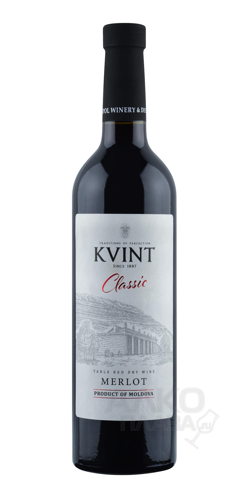 Красное сухое вино Kvint Merlot Classic 0,75 л производится Тираспольским винно-коньячным заводом KVINT. Предприятие ведёт историю с 1897 года, когда на Вокзальной улице начал работу перегонный склад. Коньячное направление развивается с 1938 года. Виноградники хозяйства площадью около 2000 гектаров расположены в районах Каменка, Рашково и Дойбаны. Климат здесь умеренно континентальный, с тёплым летом и продолжительной осенью. Чернозёмные и суглинистые почвы способствуют равномерному созреванию ягод и формируют мягкий характер напитков с выраженной фруктовой направленностью.