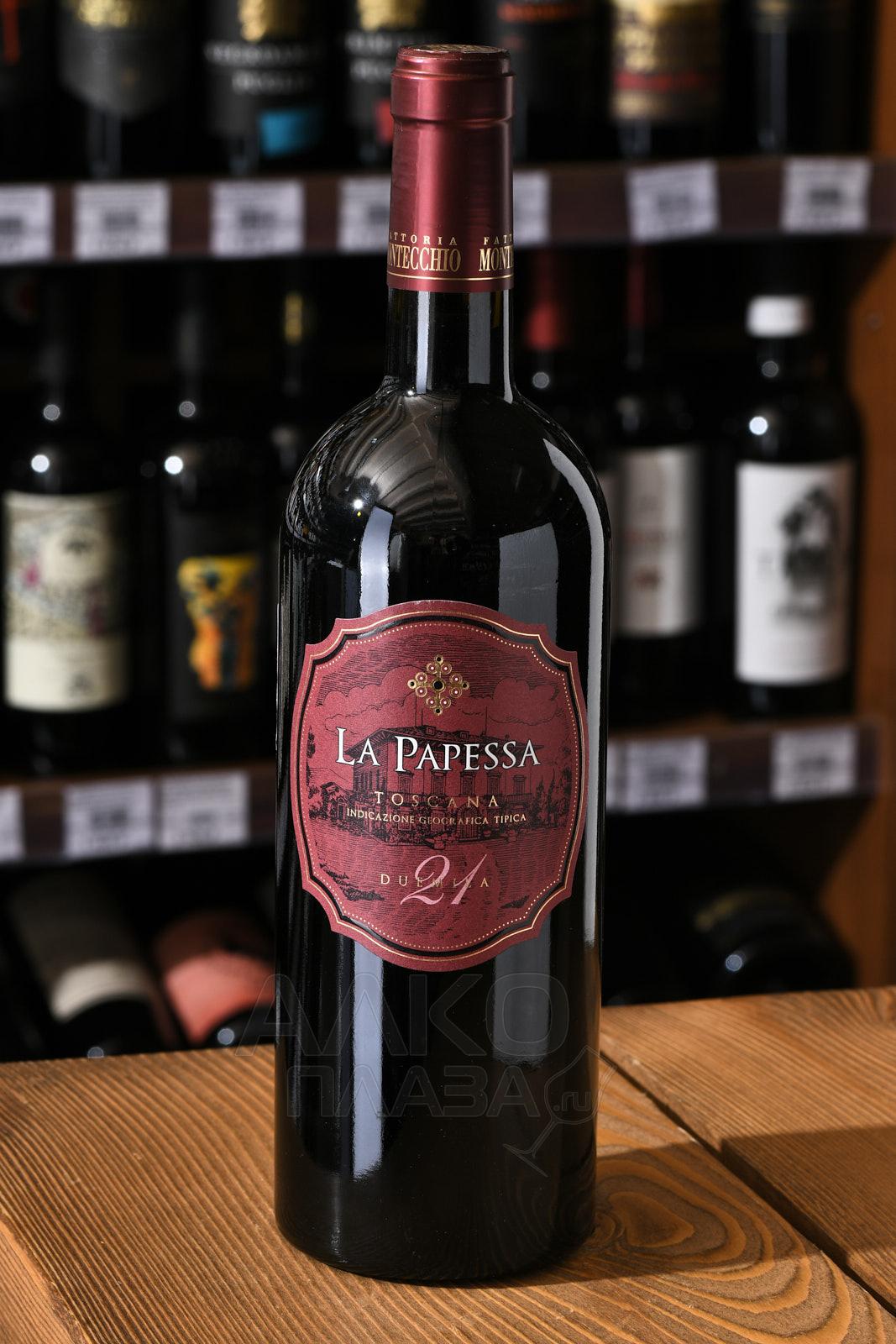 Красное сухое вино La Papessa. Montecchio Toscana IGT 2021 года 0,75 л — удивительно насыщенное, с концентрированной текстурой и в то же время элегантным профилем. Оно создано из сорта Мерло, который выращивается в центральной части поместья Фаттория Монтеккьо. Здесь располагается агрокомплекс Ла Папесса, название которого упоминается в документах XVI века. Сырье для производства собирается вручную. Ферментация с мезгой протекает при 30 градусах 20 дней, проводится малолактика. Вино выдерживают один год во французских барриках. Потенциал дальнейшего развития в бутылке составляет не менее 12-13 лет.
