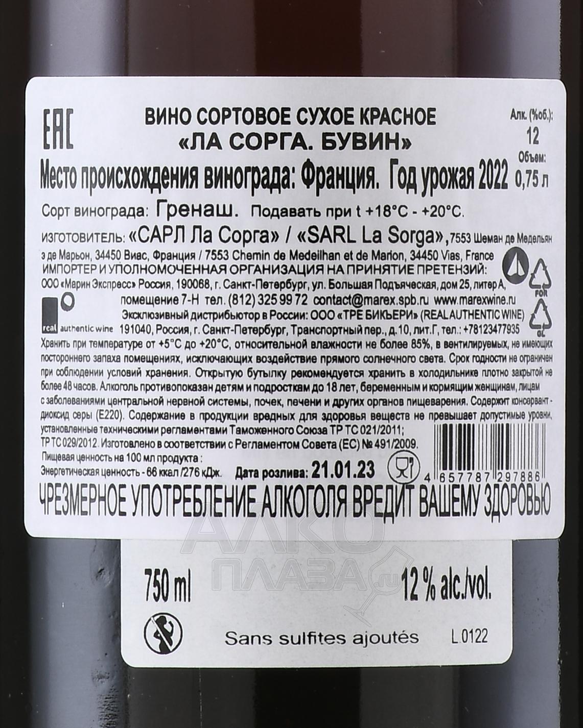 La Sorga Bouvinese - вино Ла Сорга Бувин 0.75 л красное сухое