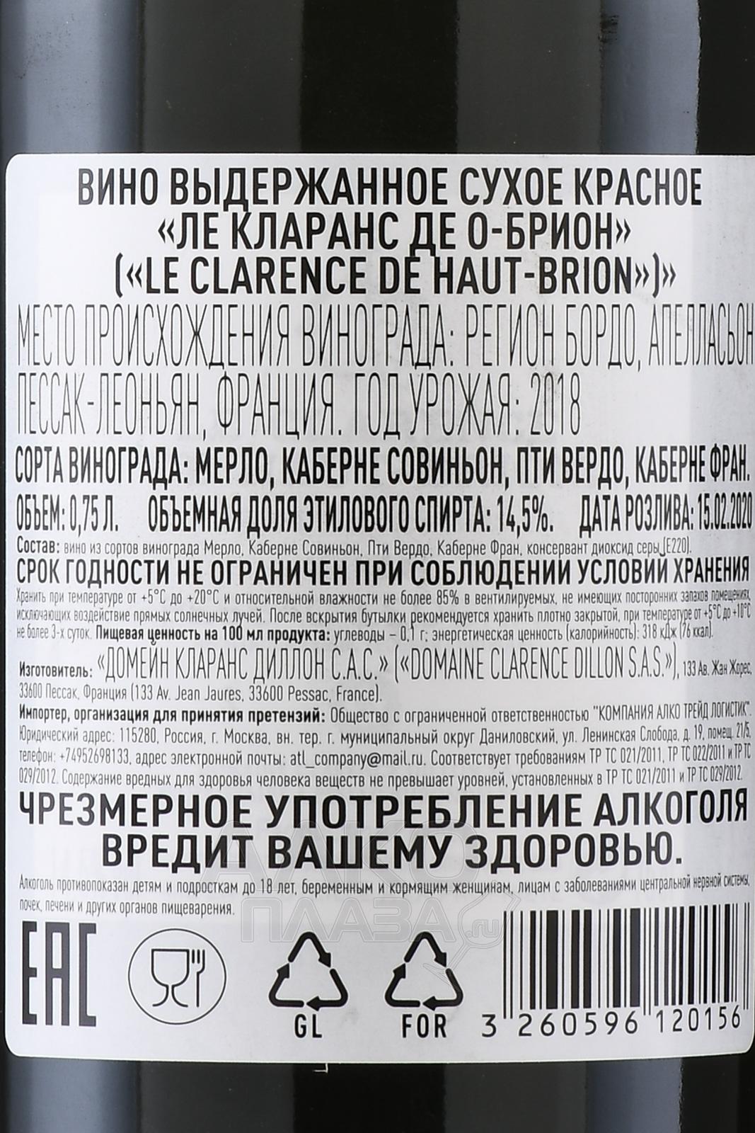 Le Clarence de Haut-Brion - вино Ле Кларанс де О-Брион 0.75 л красное сухое