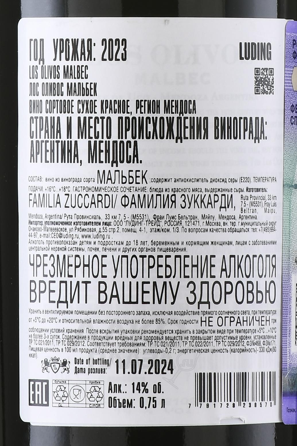 Красное сухое вино Los Olivos Malbec 0,75 л – аргентинское вино из долины Уко, расположенной в провинции Мендоса на высоте от 800 до 1200 метров над уровнем моря. Виноград собирают вручную с лоз, которые находятся в зоне с полупустынным климатом. Лето здесь солнечное и жаркое с дневной температурой около +30 °C, ночные температуры заметно ниже – около +10 °C. Такие условия помогают ягодам накапливать сахар, сохраняя при этом кислотность. После сбора и сортировки урожай ферментируют при контролируемой температуре, затем сброженное и очищенное от мезги сусло выдерживают от 6 до 12 месяцев в бочках из французского дуба.