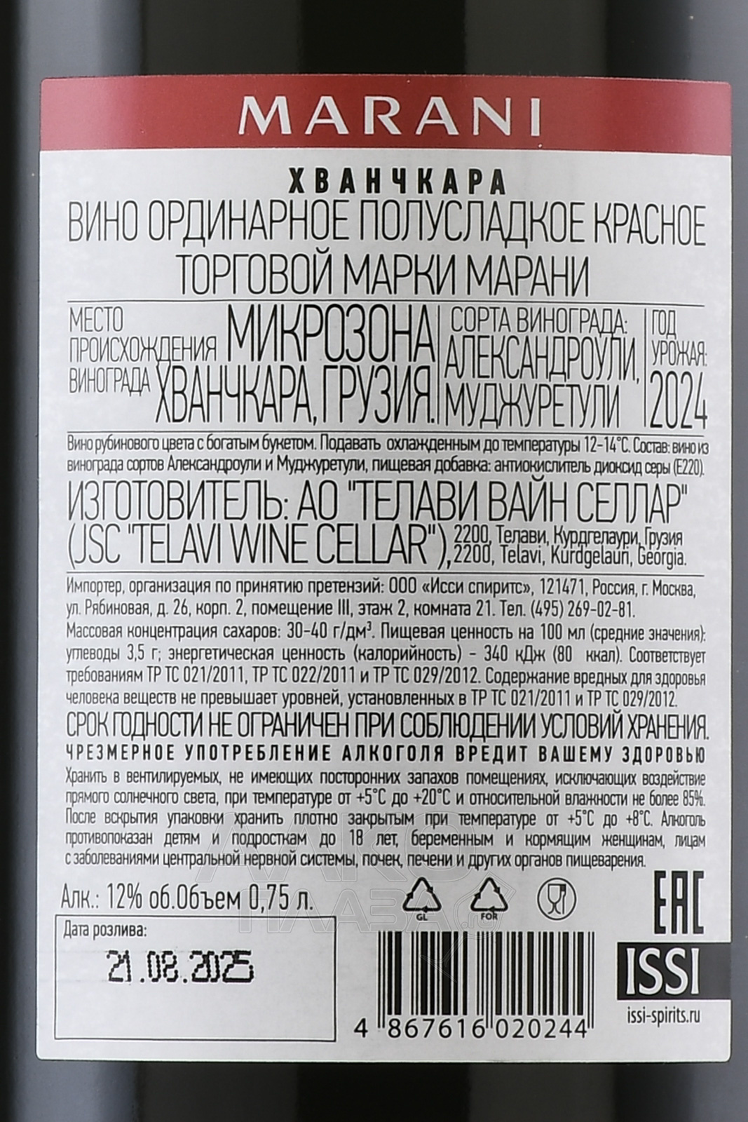 / Marani Сайт alcoplaza.ru содержит информацию, не рекомендованную для лиц, которые не достигли возраста 18 лет. Чтобы осуществить вход на сайт, Вам необходимо подтвердить свой совершеннолетний возраст. Сведения, размещенные на сайте , не являются рекламой, носят исключительно информационный характер, и предназначены только для личного использования. Информация на сайте не является публичной офертой.