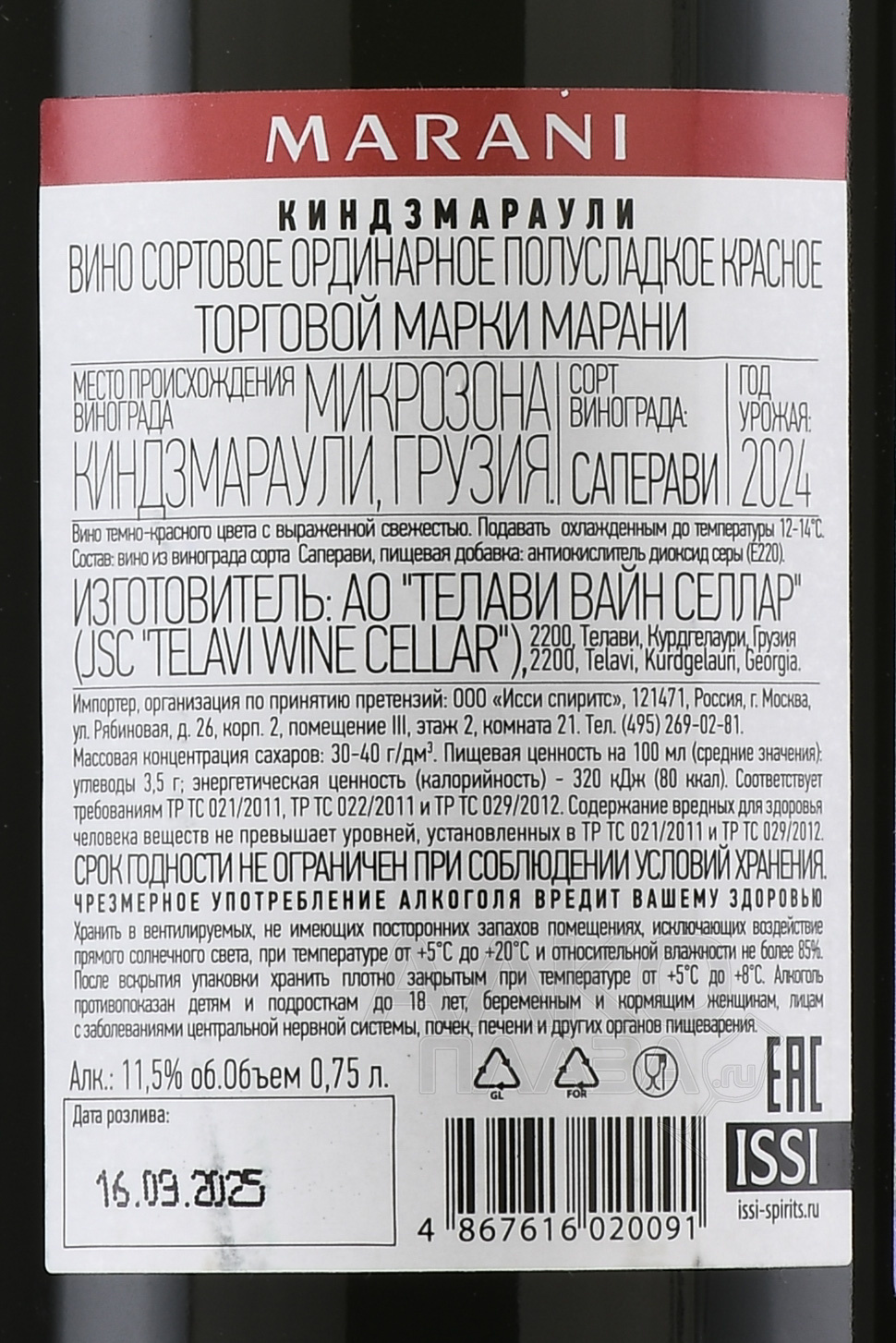 / Marani Сайт alcoplaza.ru содержит информацию, не рекомендованную для лиц, которые не достигли возраста 18 лет. Чтобы осуществить вход на сайт, Вам необходимо подтвердить свой совершеннолетний возраст. Сведения, размещенные на сайте , не являются рекламой, носят исключительно информационный характер, и предназначены только для личного использования. Информация на сайте не является публичной офертой.