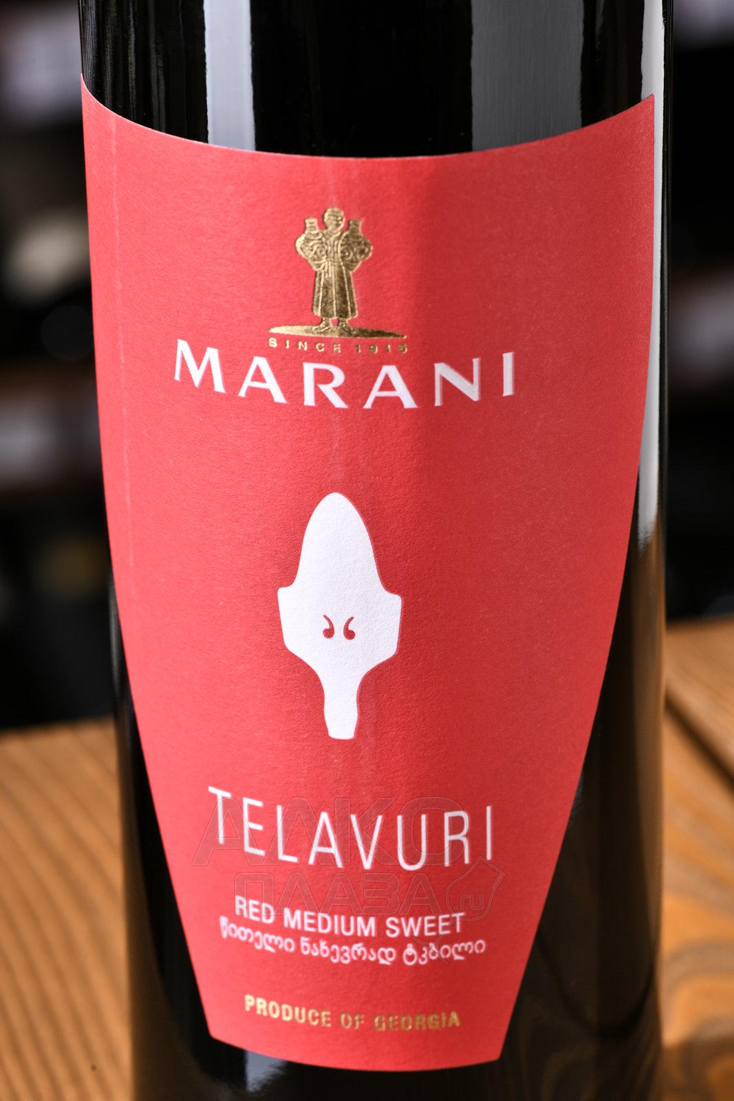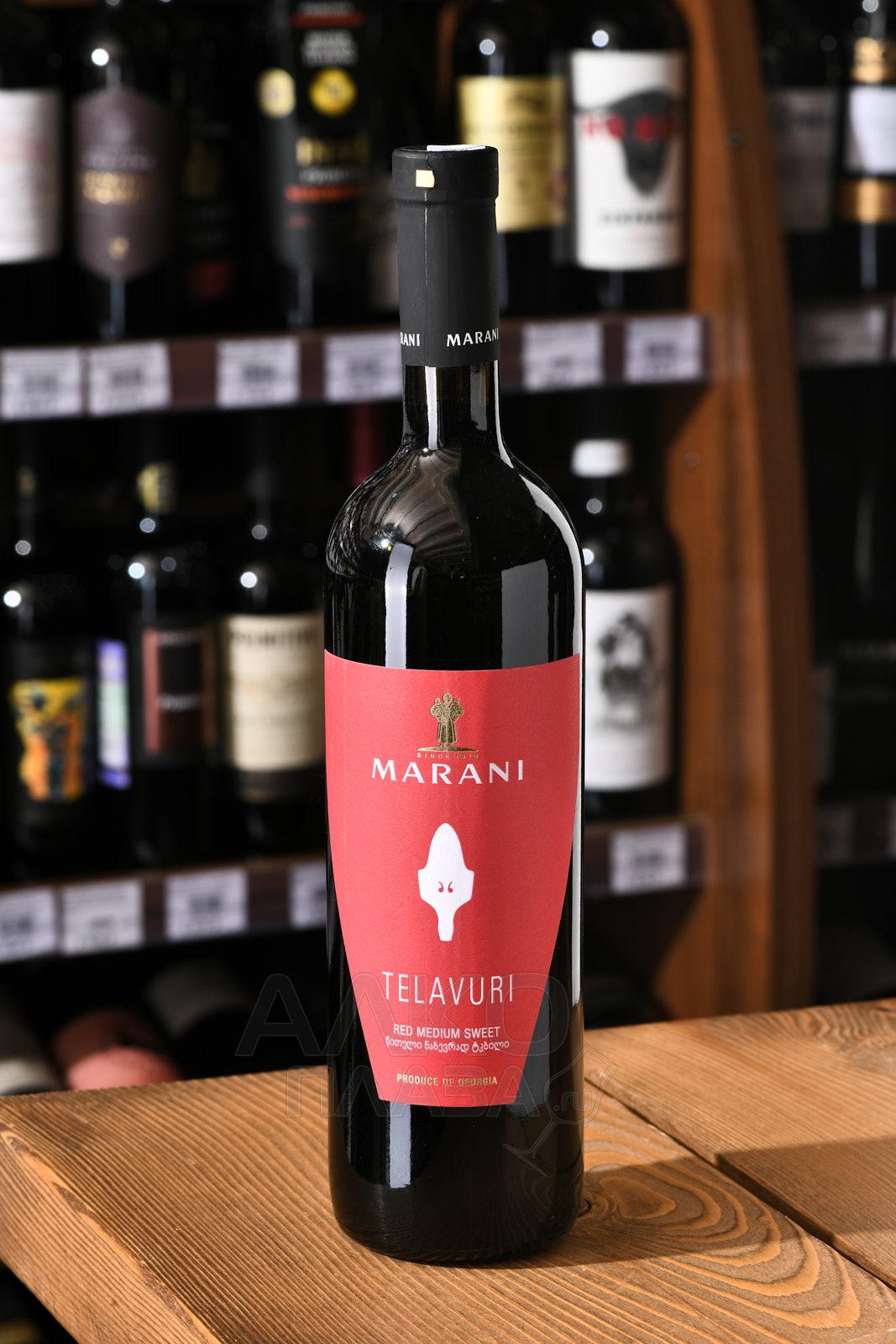 Красное полусладкое вино Marani Telavuri 2022 год 0,75 л — недорогой напиток грузинского производства, которым можно запастись в преддверии праздников или приобрести его для повседневности. Урожай для изготовления спиртного собрали в Телавском районе Кахетии, где господствует мягкий климат с умеренно-континентальными проявлениями. Ягоды аккуратно отделили от веточек и подвергли традиционной контролируемой ферментации в стальных баках при 25-28 градусах Цельсия. Для остановки уровня сладости на уровне 30-40 г/дм³ вино охладили. Выдержка не практиковалась.