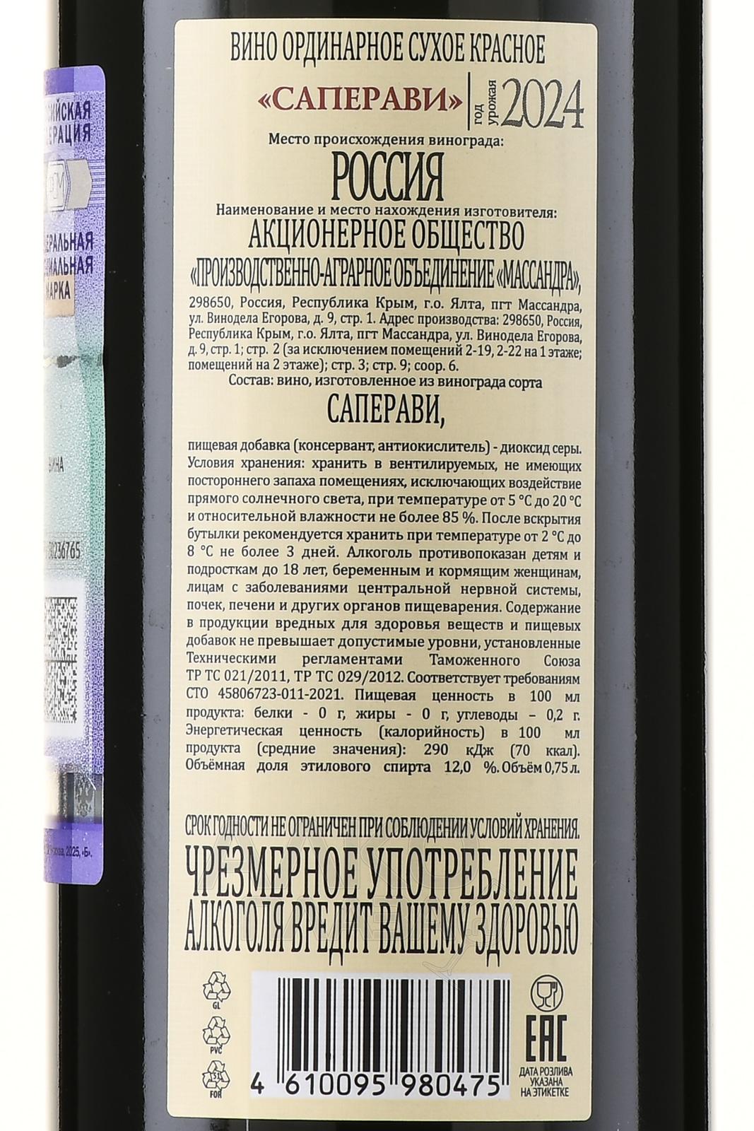 Вино Массандра Саперави красное сухое 0.75 л — популярный напиток, который впервые был выпущен в 2008 г и с тех пор неизменно является фаворитом у ценителей. Он обладает классическим стилем и изготавливается из одного сорта винограда, который произрастает в Крыму. Традиционная технология производства предусматривает выдержку в течение 1,5 лет в дубовых бочках, благодаря чему столовое вино приобретает непревзойденную глубину и насыщенность букета.