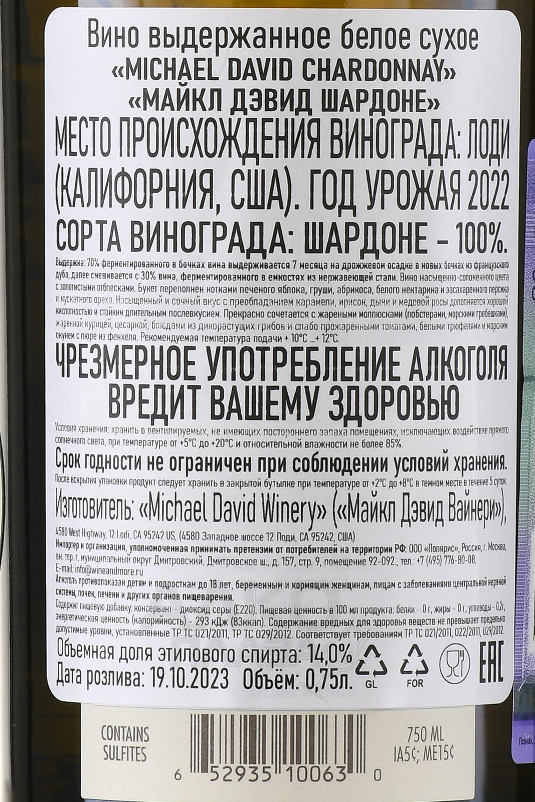 / Michael David Winery Сайт alcoplaza.ru содержит информацию, не рекомендованную для лиц, которые не достигли возраста 18 лет. Чтобы осуществить вход на сайт, Вам необходимо подтвердить свой совершеннолетний возраст. Сведения, размещенные на сайте , не являются рекламой, носят исключительно информационный характер, и предназначены только для личного использования. Информация на сайте не является публичной офертой.