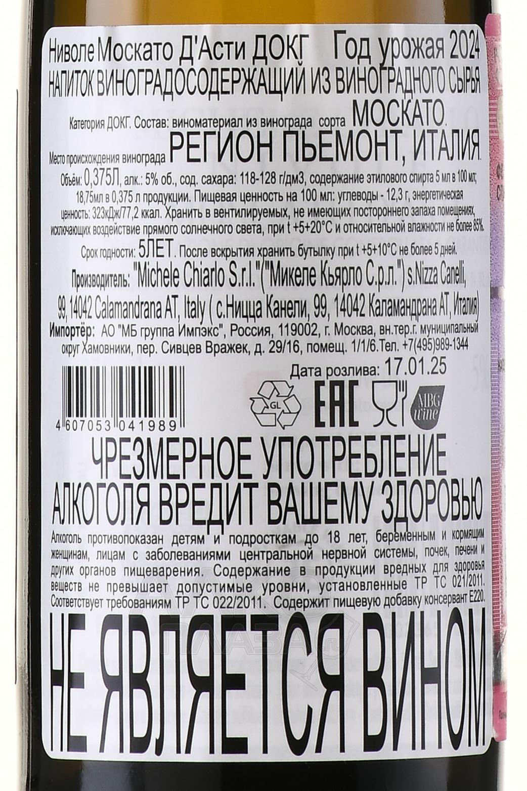 Белое сладкое вино Michele Chiarlo Nivole Moscato d`Asti 0,375 л производится в Пьемонте, на северо-западе Италии, в знаменитой зоне Асти. Виноградники расположены на холмах с южной экспозицией, на высоте около 250–300 метров над уровнем моря. Почвы состоят из известняка и песчаника, что придает ягодам характерную минеральность и тонкий аромат. Классическая технология производства предусматривает мягкое прессование, ферментацию при низкой температуре и раннее охлаждение сусла, чтобы сохранить естественную сладость и свежесть. Ниволе, что в переводе с итальянского означает «облака», — одно из самых узнаваемых вин дома Микеле Кьярло, отражающее изящество пьемонтской школы. Этот напиток создается для наслаждения моментом — легкое, ароматное, с гармоничным балансом сладости и кислотности.