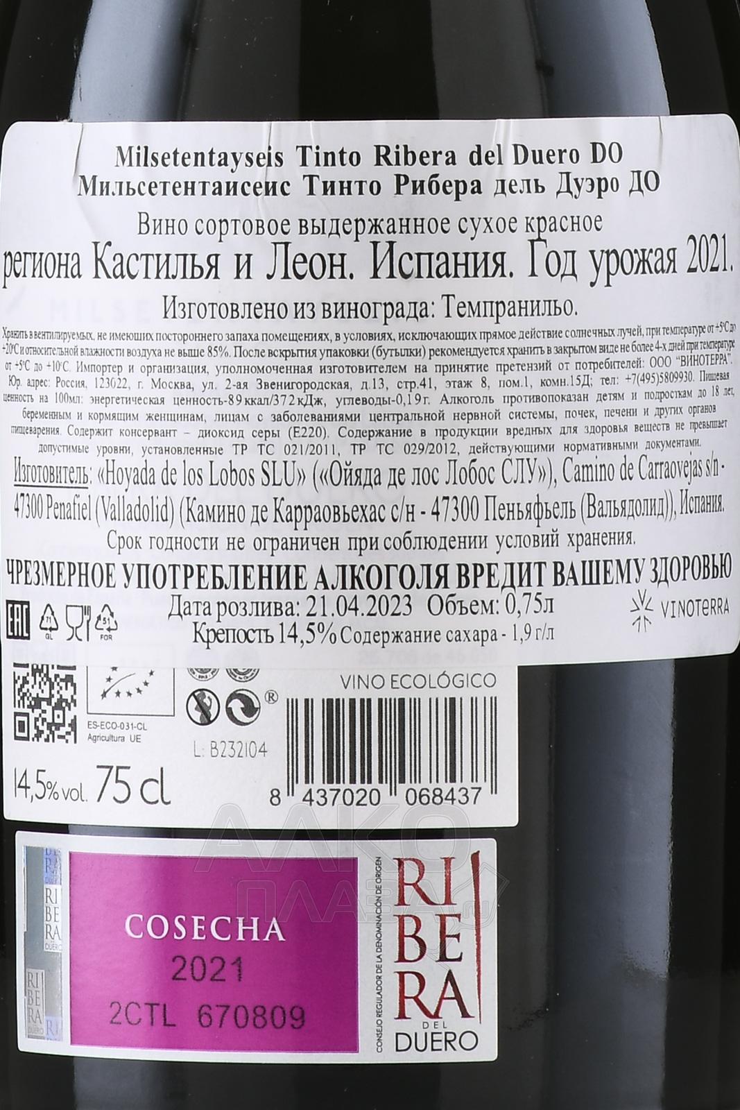 Красное сухое вино Milsetentayseis Ribera del Duero Tinto DO 0,75 л производится в Испании, в престижном регионе Рибера-дель-Дуэро. Виноградники расположены на высоте около 900 метров над уровнем моря, где прохладные ночи и жаркие дни создают идеальные условия для медленного созревания ягод. Известково-глинистые с примесью гальки почвы дают концентрированный вкус плодов. Урожай собирают вручную с лоз возрастом более 80 лет. Брожение проходит в небольших чанах из нержавеющей стали при контролируемой температуре, а затем напиток выдерживается 18 месяцев во французских дубовых бочках.