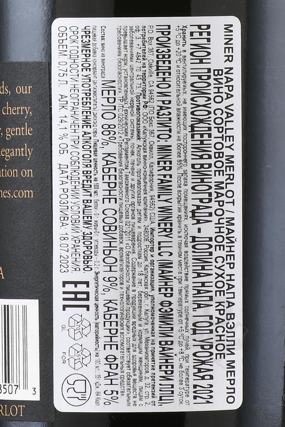 Вино Miner Napa Valley Merlot 0.75 л создаётся на виноградниках долины Napa Valley, где мягкий средиземноморский климат и разнообразие почв — от аллювиальных равнин до каменистых склонов — обеспечивают оптимальное созревание ягод. Урожай собирают как с равнинных, так и с горных участков, что формирует сложный профиль будущего напитка. Винификация включает тщательный отбор ягод, ферментацию при контролируемой температуре и выдержку в дубовых бочках, придающую структуру и глубину. Такой подход позволяет раскрыть характер Мерло через сочетание спелых фруктовых оттенков, табачных нюансов и лёгких дымных акцентов кедра, сохраняя баланс между мягкостью и выразительностью.