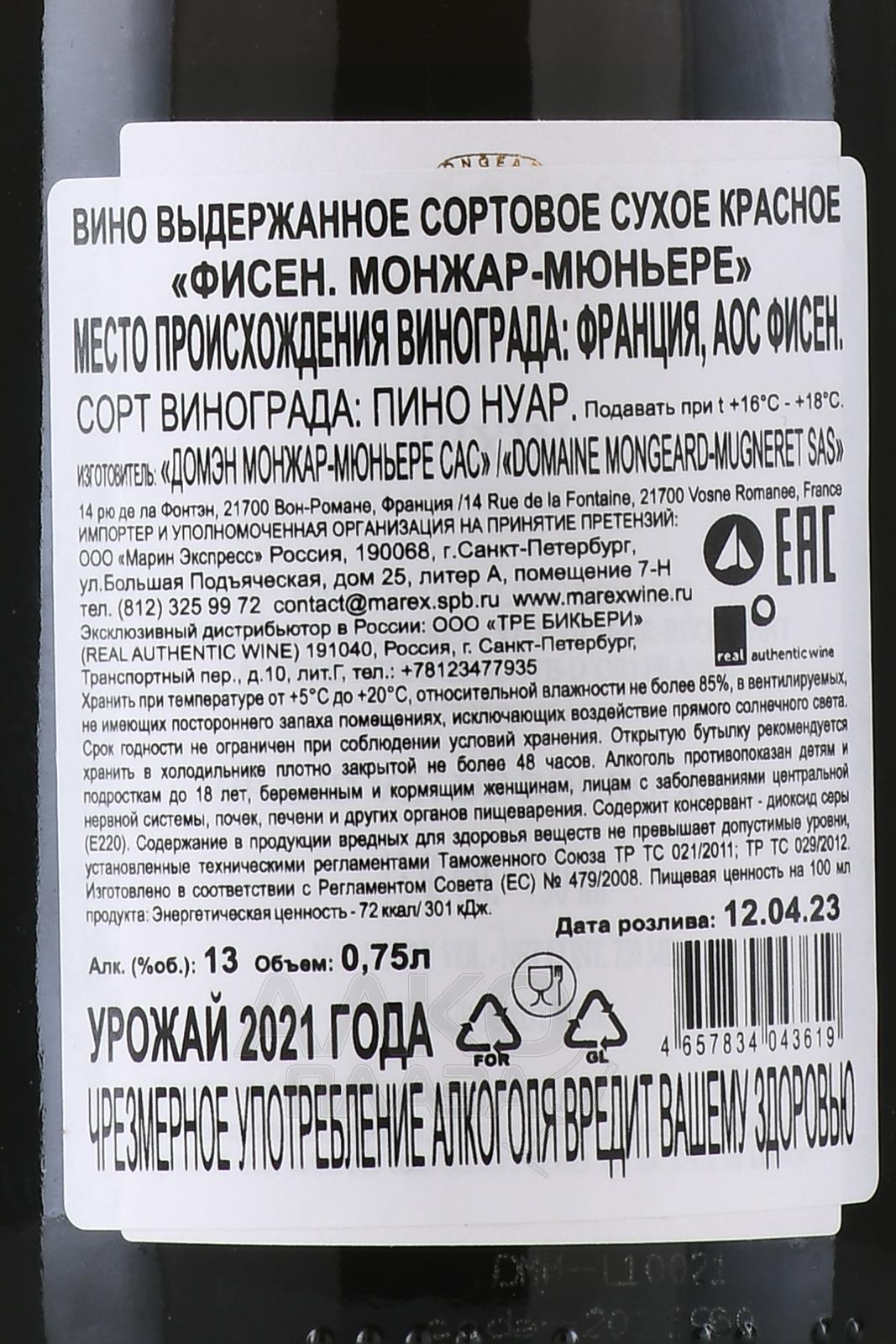 Красное сухое вино Mongeard-Mugneret Fixin 0,75 л производится в одном из старейших винодельческих регионов Бургундии, на склонах Кот-де-Нюи. Виноградники Фисена расположены на высоте около 350 метров над уровнем моря, где почвы состоят из известняка и глины с вкраплениями мергеля. Такой терруар обеспечивает хороший дренаж и позволяет ягодам сохранять баланс между сахаром и кислотностью. Климат здесь умеренно-континентальный: прохладная весна, теплое лето и сухая осень создают условия для равномерного созревания плодов. Урожай собирают вручную, а процесс винификации проводится традиционным методом с выдержкой в дубовых бочках. Готовый напиток отличается яркой структурой и способностью к хранению, что делает его ценным примером классики бургундского стиля.