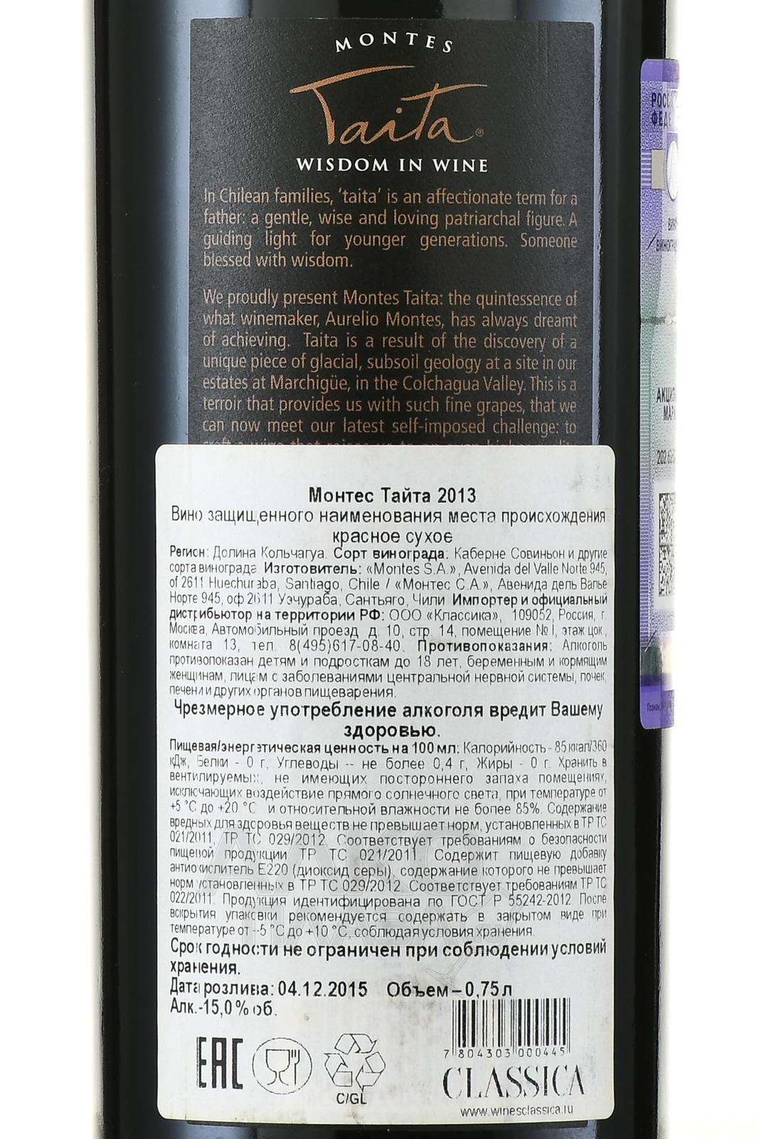 Montes Taita Colchagua Valley DOC Wooden Box - вино Монтес Тайта 0.75 л в д/у красное сухое