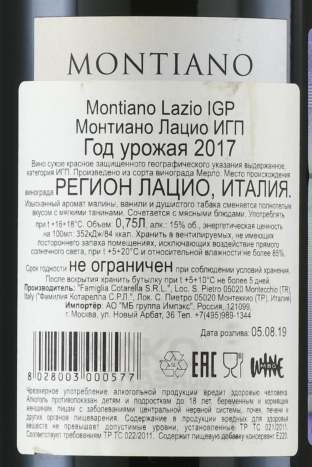 Montiano Lazio IGT - вино Монтиано Лацио ИГП 0.75 л красное сухое