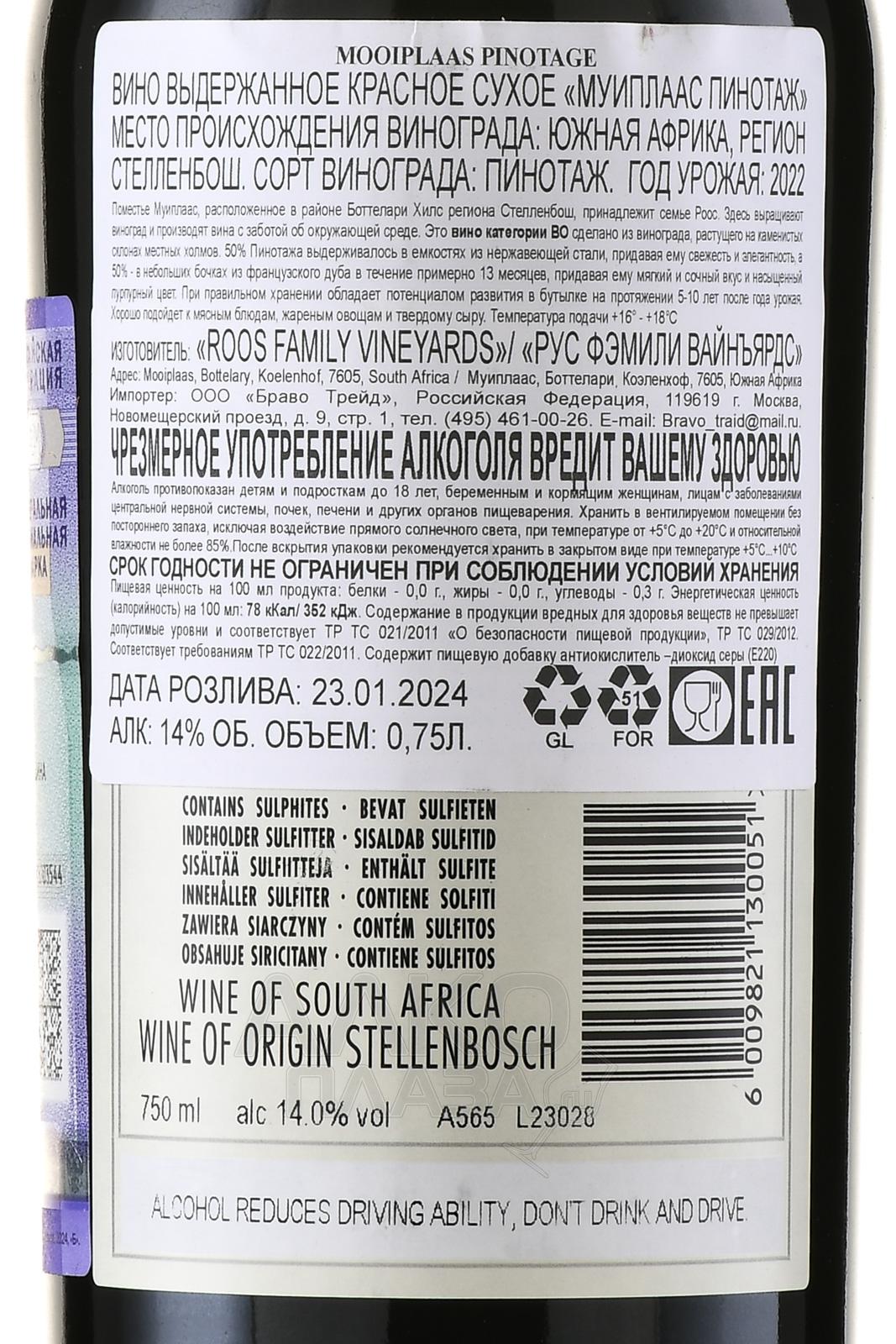 / Mooiplaas Wine Estate Сайт alcoplaza.ru содержит информацию, не рекомендованную для лиц, которые не достигли возраста 18 лет. Чтобы осуществить вход на сайт, Вам необходимо подтвердить свой совершеннолетний возраст. Сведения, размещенные на сайте , не являются рекламой, носят исключительно информационный характер, и предназначены только для личного использования. Информация на сайте не является публичной офертой.