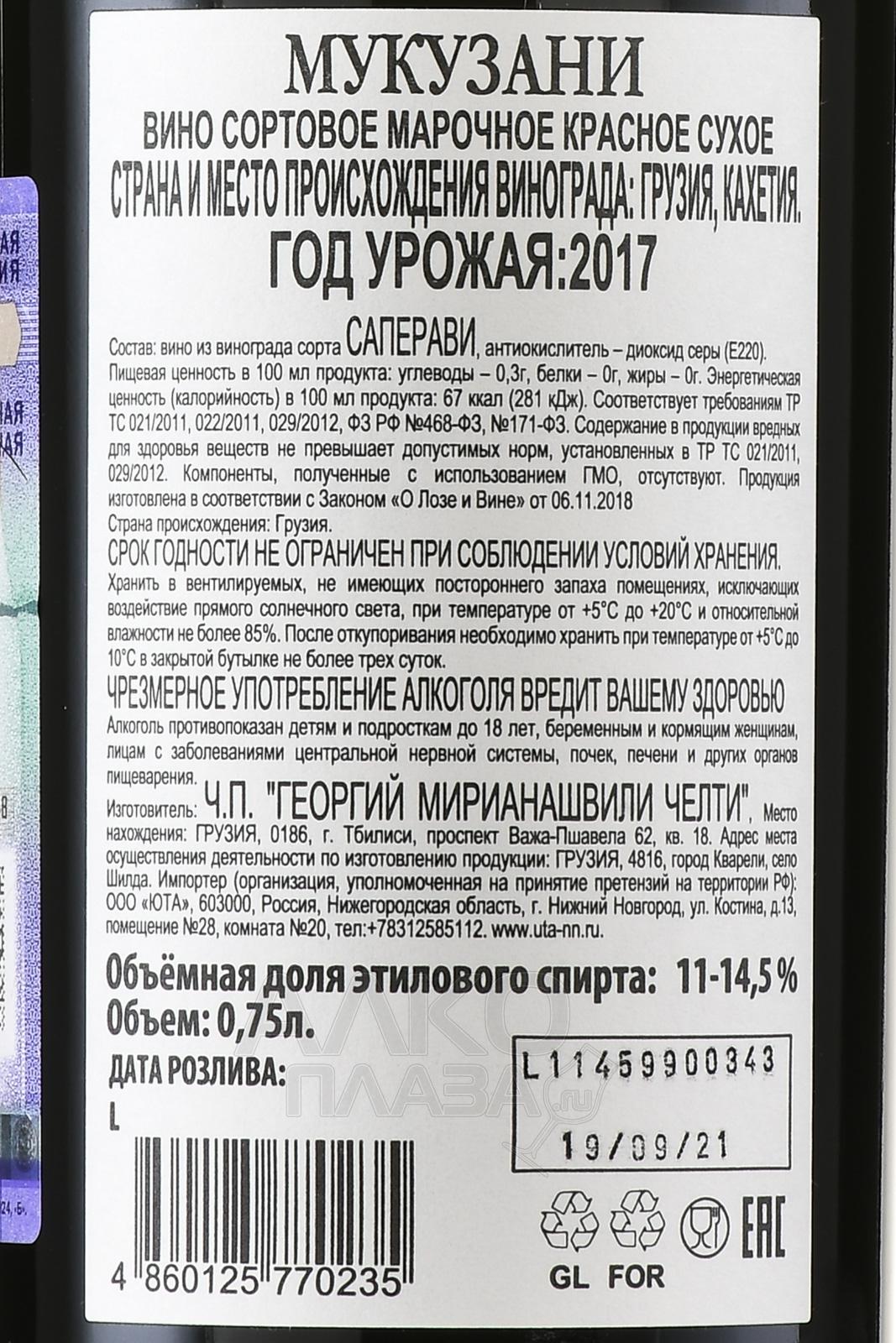 Красное сухое вино Mukuzani Chelti Family Collection 0,75 л – одна из традиционных грузинских вариаций с защищенным наименованием. Моносепажный напиток происходит из одноименной микрозоны в регионе Кахетия. Терруар славится урожаями, из которых получают вина, наиболее близкие к современным европейским аналогам, с выдающейся органолептикой и высоким потенциалом к выдержке. Еще одной отличительной чертой спиртного является выдержка в дубе – в данном случае сброженный сок созревал в контакте с древесиной как минимум 12 месяцев, что позволило присвоить образцу статус марочного вина.