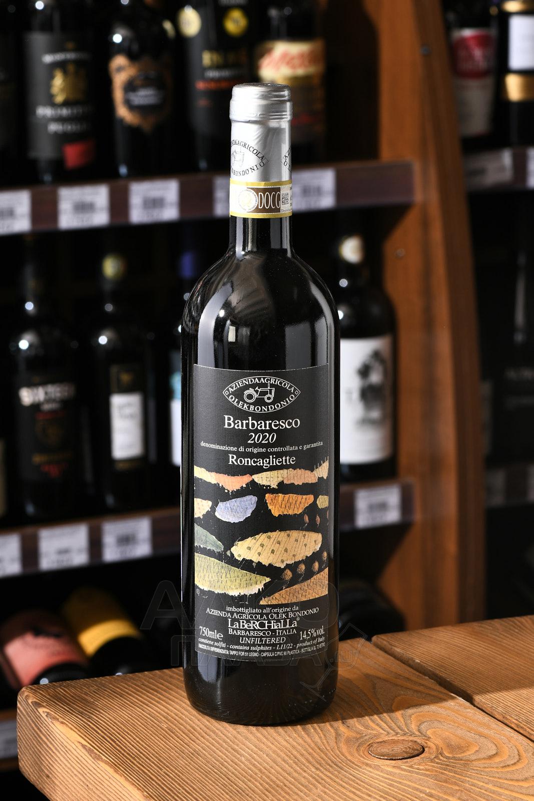 Красное сухое вино Olek Bondonio Roncagliette Barbaresco DOCG 2020 года 0,75 л — образцовое Барбареско с шелковистой текстурой и многослойным букетом. Оно ярко отражает характер терруара, где был выращен виноград. Его собирали вручную с 50-летних лоз на небольшом участке крю Рокальетте в южной части винодельческой зоны Барбареско. Виноградник спускается вниз по склону и находится в естественном амфитеатре, который продувается свежим воздухом. Экспозиция — южная, почвы — твердые, известняково-глинистые, способ обработки лозы — органический. Винификация включает в себя мацерацию на кожице в течение 8 недель и выдержку 20 месяцев в старых бочках ботти большого объема. Потенциал винтажа 2020 года — не менее 5 лет.