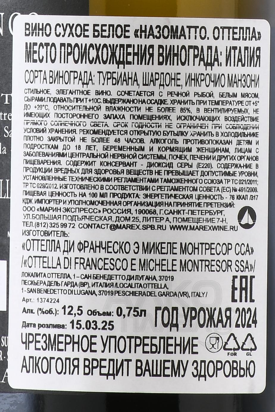 Белое сухое вино Ottella Nasomatto 0,75 л производится на юге озера Гарда, в зоне Лугана региона Венето. Винодельня работает с участками, расположенными на равнинных и слегка приподнятых террасах ледникового происхождения. Почвы здесь плотные, глинистые, с высоким содержанием минеральных соединений. Они хорошо удерживают влагу и медленно прогреваются. Это влияет на характер напитка, формируя сдержанную ароматичность, свежесть и отчётливую структуру. Близость водоёма смягчает климат и снижает температурные колебания, что способствует равномерному созреванию ягод.