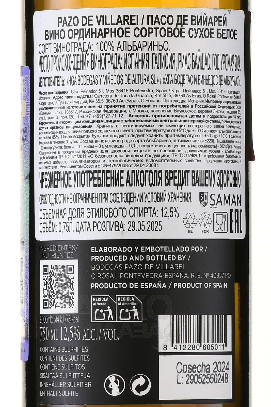 Pazo de Villarei Albarino - вино Пасо де Вийарей Альбариньо 0.75 л белое сухое
