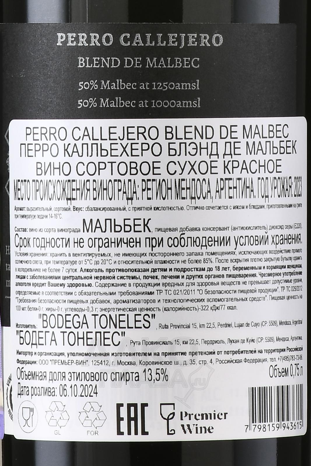 Красное сухое вино Perro Callejero Blend de Malbec 0,75 л создано в Аргентине из винограда, выращенного в разных частях Мендосы. Участки расположены как в зоне Лухан-де-Куйо, так и в долине Уко, что позволяет сочетать более зрелый профиль с напряжённой кислотностью. Сбор проводился вручную и в разные даты для каждого виноградника, чтобы достичь оптимальной спелости и точного выражения терруара. Каждая партия ягод обрабатывалась отдельно. Ферментация проходила в бочках из французского дуба и бетонных ёмкостях при низкой температуре около 23 °C с использованием диких дрожжей. Экстракция выполнялась вручную методом пижажа, выдержка проходила в бочках из французского и американского дуба. Производитель использовал ёмкости повторного наполнения, а срок созревания напитка составил 6–8 месяцев. Финальный купаж формировался виноделом из лучших бочек. Вино получило 91 балл от Robert Parker`s Wine Advocate за баланс, свежесть и гастрономичность.