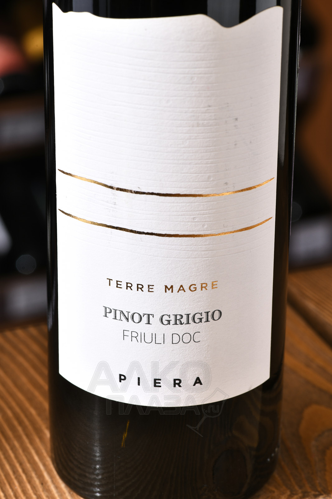 Белое сухое вино Pinot Grigio Terre Magre 2023 год 0,75 л — 13-градусный алкоголь моносортового типа, выпущенный в итальянской зоне Фриули. Его состав включает ягоды с почв гравийно-песчаного состава высотой 200 м над уровнем моря с холмистым рельефом. Урожай подвергался измельчению и отжиму, после их проведения напиток отправили ферментироваться в классические чаны с регулировкой температурного диапазона. Срок выдержки вина на осадке составил полгода. Перед розливом его не фильтровали, что допускает небольшой осадок на дне бутылки.