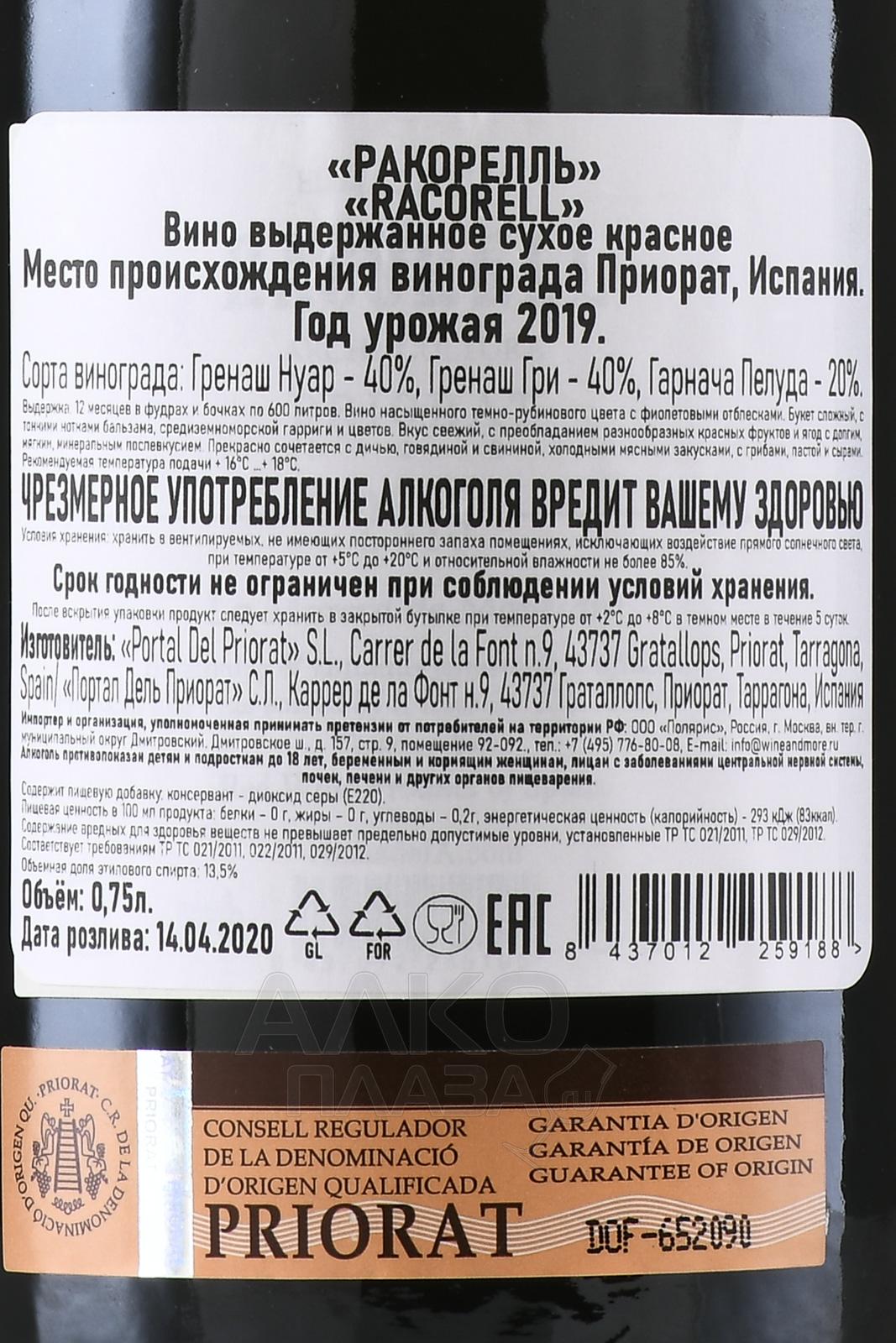 Красное сухое вино Portal del Priorat Racorell 0,75 л создано в апелласьоне DOQ Priorat, где лозы растут на сланцевых почвах, известных как licorella. Напиток отражает современный подход к стилю региона, смещённый от плотности к утончённости и лёгкой питкости. В основе лежит купаж местных вариаций Гарначи, включая редкие мутации. Ягоды собрали вручную. После сортировки проходила спонтанная ферментация в бетонных ёмкостях, которая сохранила первичную фруктовость сырья. Далее последовала выдержка — двенадцать месяцев в бочках, где древесина играет второстепенную роль и не доминирует над характером урожая. Это совсем иной облик Приората, который демонстрирует свежесть и элегантность.