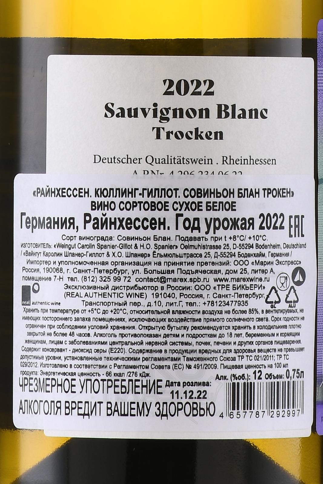 Белое сухое вино Rheinhessen Kühling-Gillot Sauvignon Blanc Trocken 0,75 л — лёгкое, живое и чистое выражение земли Рейнгессена. Виноград произрастает на склонах с песчано-галечными и частично меловыми отложениями в Боденхайме, придающими минеральность. В хозяйстве виноградарство ведётся органически и с биоподходом. Урожай собирают вручную с контролем каждой грозди. После сбора ягоды сразу прессуют, сусло ферментируют в нержавеющих ёмкостях при низких температурах (16–18 °C). Затем напиток выдерживается на осадке несколько месяцев, получая глубину.