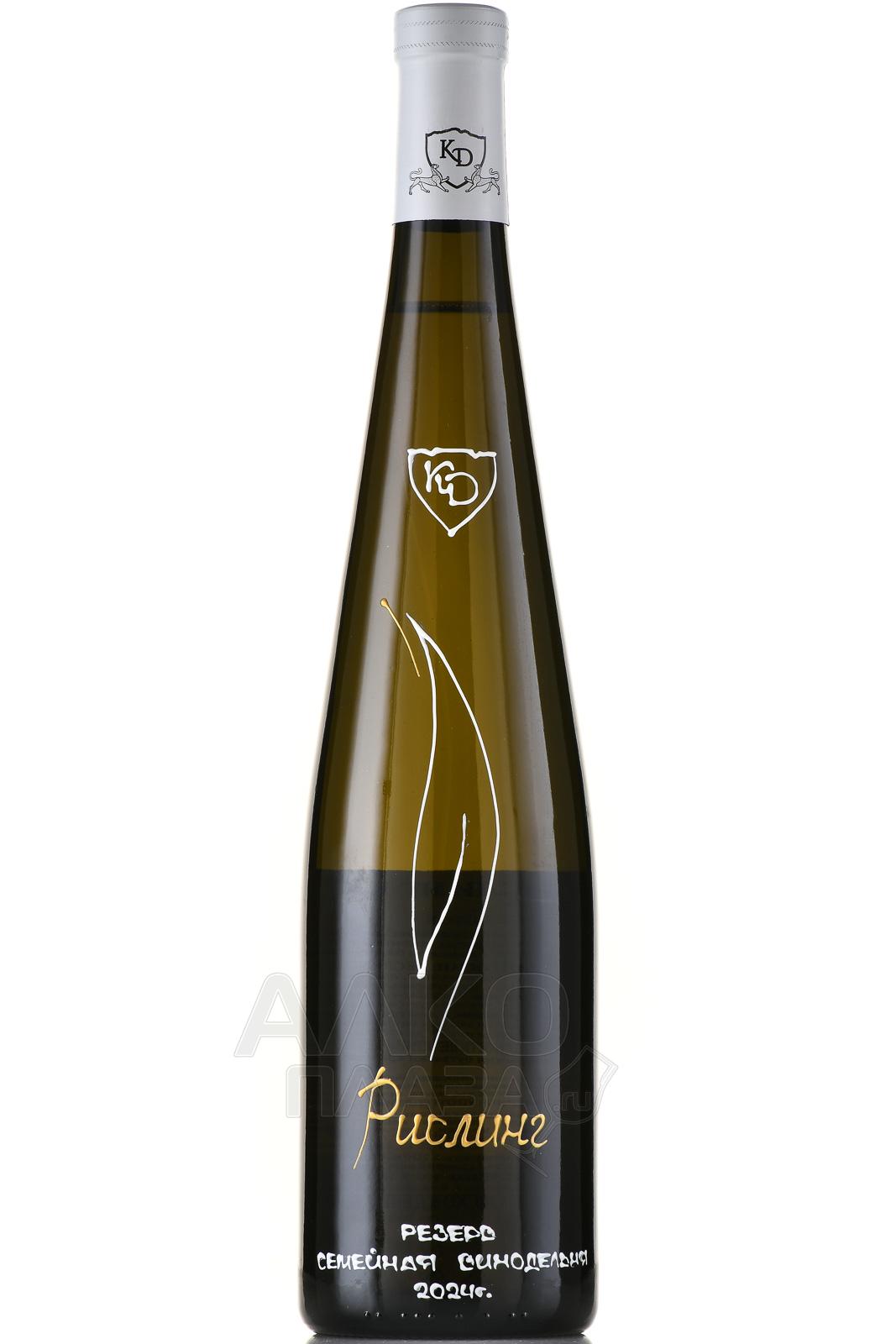Белое сухое вино Рислинг Резерв КД 0,75 л было выпущено небольшим тиражом (всего несколько сотен бутылок), получилось самобытным и заслуживающим внимания ценителей. Оно создано из одного сорта, который выращивают в уникальном российском терруаре – Северной Осетии. Виноградник с 5-летними лозами находится в долине реки Терек. Местные природные условия весьма схожи с Бордо, но в сентябре тут прохладнее, поэтому ягоды не перезревают, сохраняя идеальный баланс кислинки и сахаристости. Винификация производится на семейной винодельне Константина Дзитоева, расположенной в окрестностях Владикавказа. Вино категории Резерв выдерживали несколько месяцев, затем бутилировали после легкой фильтрации.