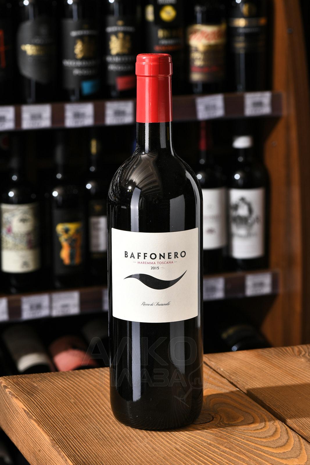 Красное сухое вино Rocca di Frassinello Baffonero 2015 г. 0,75 л — 15-градусный алкоголь из Мареммы (регион Италии Тоскана), который регулярно получает высокие оценки винных критиков. Он содержит виноград с участка площадью 7 га, сорванный с лоз ручным способом в пределах одинакового сезона. Длительная терморегулируемая ферментация в стальных баках была направлена на максимальное извлечение сахара из ягод. Кроме того, проводились процедуры яблочно-молочного брожения и выдержки в барриках на базе французской дубовой древесины сроком 1 год 2 месяца. Разлитое по бутылкам вино около года «отдыхало», лишь после этого его отправили на продажу. Вариация имеет солидный потенциал хранения, достигающих 13 лет. Ее выпустили ограниченным тиражом из 3000 шт.