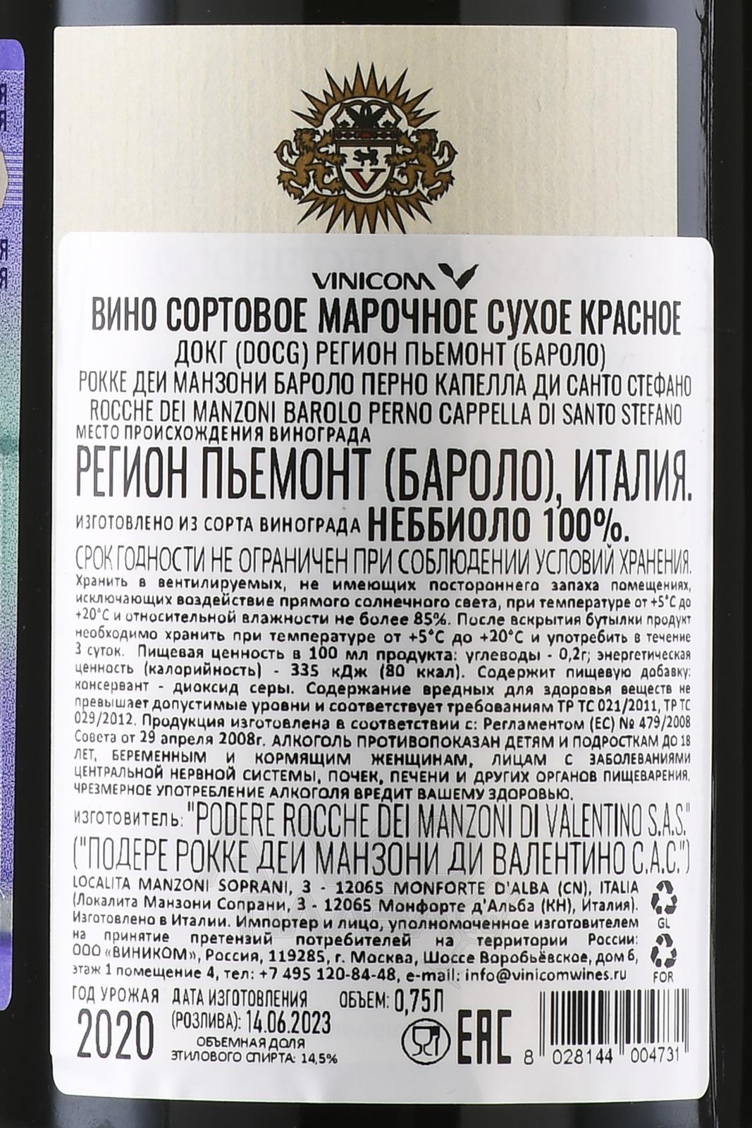 Красное сухое вино Rocche dei Manzoni Barolo Perno Cappella di Santo Stefano 0,75 л создано в самом сердце Пьемонта, в зоне Бароло, где виноградники расположены на холмах с известняково-глинистыми почвами. Этот терруар формирует плотную структуру и сложный ароматический профиль вина. Урожай собирается вручную, ягоды проходят тщательный отбор. Ферментация проводится в стальных емкостях с контролем температуры, что помогает сохранить чистоту вкуса. Затем вино выдерживается в больших бочках из французского дуба, что придает ему гармонию и глубину. Бароло этого уровня ценится критиками и часто получает высокие оценки за баланс, потенциал выдержки и точное отражение стиля винодельни Рокке деи Манзони. Его уникальность заключается не только в происхождении из редкого крю Перно Капелла ди Санто Стефано, но и в высокой стабильности качества от года к году.
