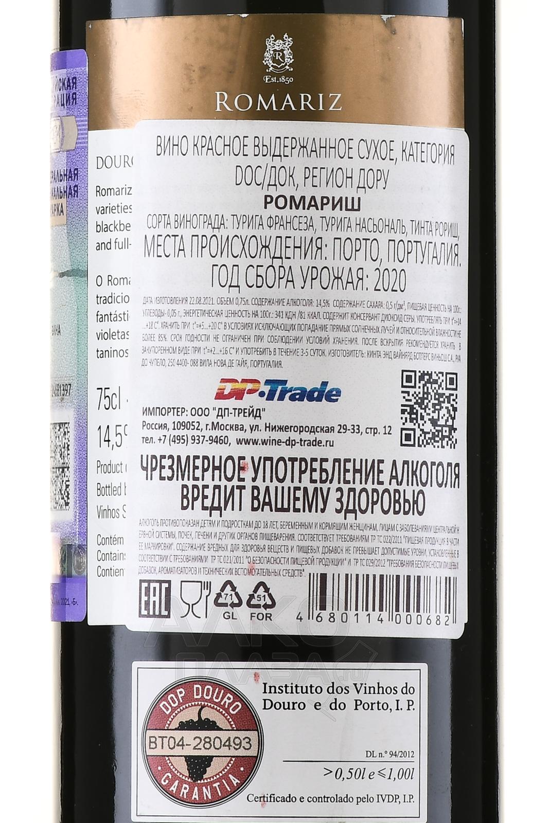 Romariz Douro DOC Tinto - вино Ромариш Тинто Дору ДОК 0.75 л красное сухое