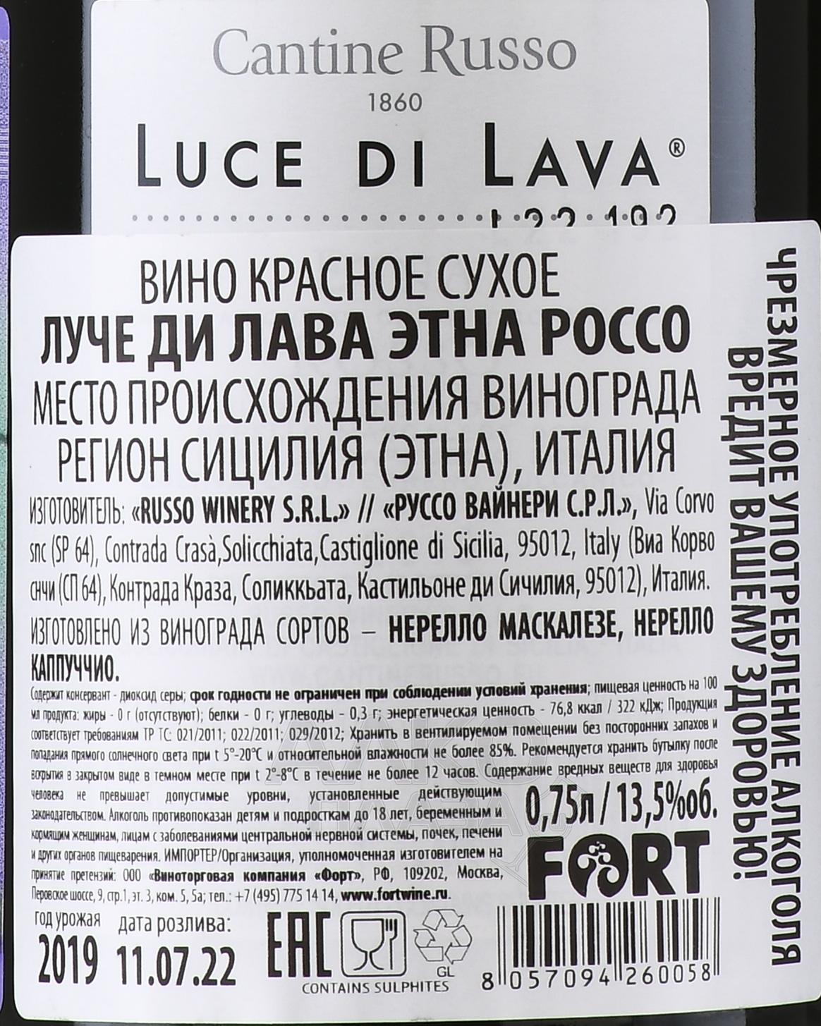 Russo Luce di Lava Rosso Etna - вино Руссо Луче ди Лава Этна Россо 0.75 л красное сухое