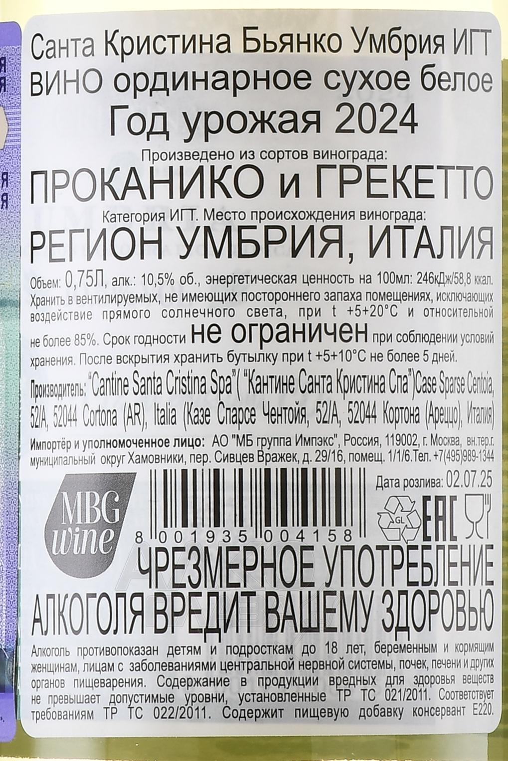 Santa Cristina Bianco Umbria IGT - вино Санта Кристина Бьянко Умбрия ИГТ 0.75 л белое сухое