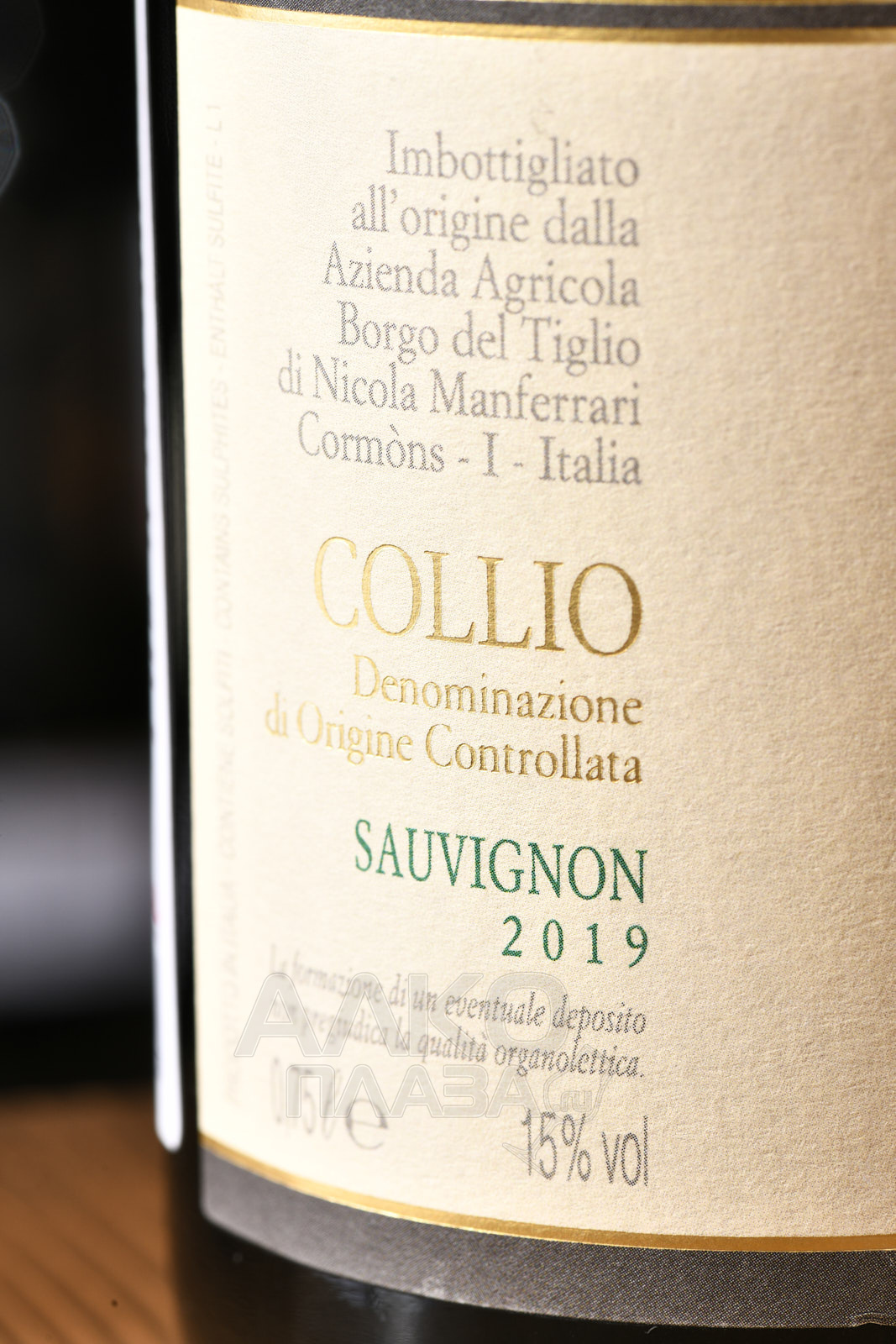 Белое сухое вино Sauvignon Collio DOC 2019 г. — 15-процентный итальянский напиток защищенного географического наименования, произведенный в регионе Фриули-Венеция-Джулия (область Коллио) из одного сорта винограда. Отжатые спелые ягоды ферментировались в цистернах из нержавеющей стали при термоконтроле.
