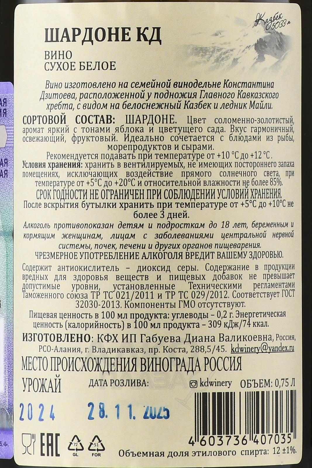 Вино белое сухое Шардоне Резерв КД 0,75 л – винтажный сорт, выпущенный ограниченным тиражом на семейной винодельне в долине Терека. Напиток винифицирован популярным в мире методом ферментации при контролируемой температуре. Для улучшения органолептических качеств его дополнительно выдержали в стальных резервуарах на протяжении года. Бутылка, украшенная вручную мастерицами компании, может стать интересным презентом к празднику.