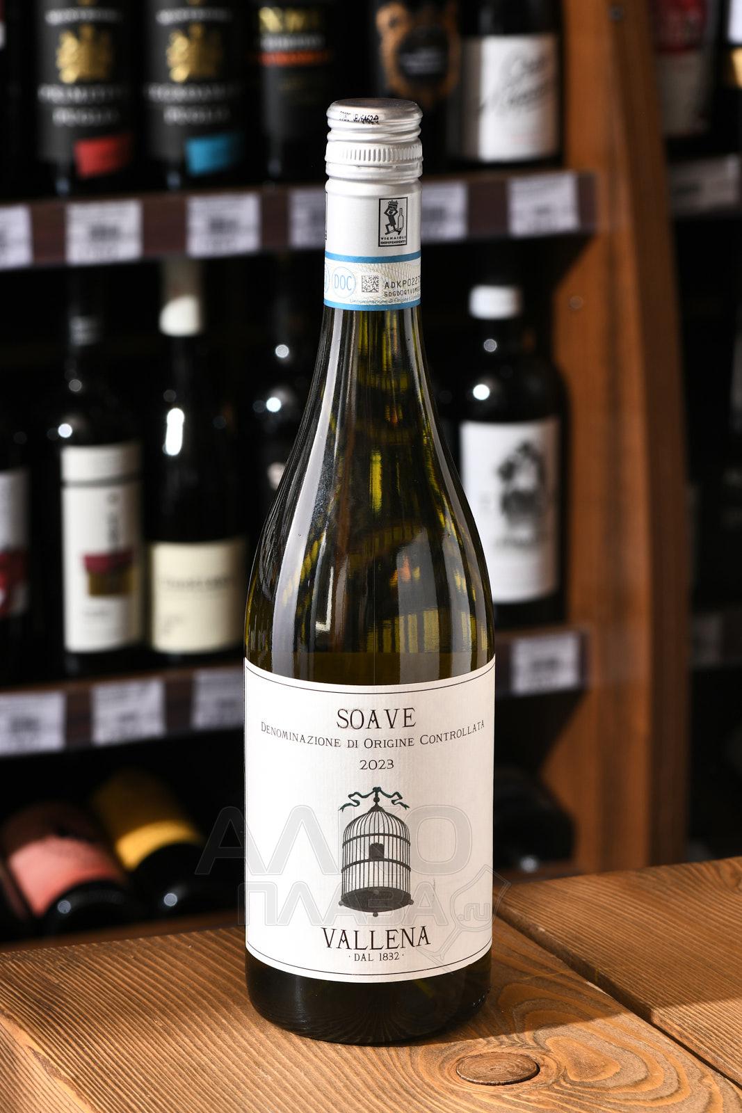 Белое сухое вино Soave Vallena 2021 г. 0,75 л из зоны Соаве в итальянском регионе Венето относится к моносепажному формату и контролируется по месту происхождения, поэтому маркируется аббревиатурой «DOC». 13-процентный алкоголь гарантированного качества создали на современном оборудовании посредством сбраживания с регулировкой температурных значений и выдержки в металлической таре.