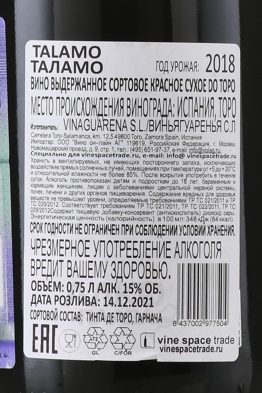 Красное сухое вино Talamo Toro DO 0,75 л — насыщенный напиток из региона Toro в Кастилье-и-Леоне, созданный из сортов Tinta de Toro и Garnacha. Выдержанный в дубовых бочках, он обладает крепостью 15%, что подчёркивает полноту и характер. Тинта де Торо, местный вариант Темпранильо, придаёт купажу насыщенность и стойкую структуру, а Гарнача в небольшом проценте смягчает танинность. Образец имеет категорию DO (Denominación de Origen), что гарантирует контроль происхождения и соблюдение традиций. Виноградники, с которых собирали урожай для винификации, расположены на высоте 620–750 м над уровнем моря. Климат региона — континентальный с жарким летом до +37 °C и холодной зимой до −11 °C. Годовое количество осадков — 350–400 мм, солнечных часов около 2 600 в год. Почвы состоят из песка, глин и известняковой породы, что придаёт вину плотную структуру и характерную минеральность.