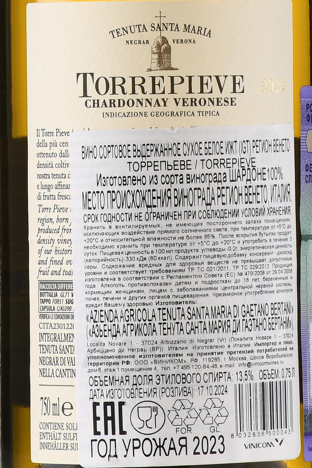 Белое сухое вино Tenuta Santa Maria Torrepieve 0,75 л — изысканное творение семьи Бертани, воплощающее элегантность венецианского виноделия. Производится в историческом поместье в Вальполичелле в регионе Венето, где виноградники расположены на высоте около 150–200 метров над уровнем моря. Почвы здесь в основном известняково-глинистые с хорошим дренажом, что обеспечивает оптимальные условия для созревания ягод и формирует минеральный характер напитка. Сбор урожая проводится вручную, с тщательным отбором гроздей. Ферментация проходит при контролируемой температуре, часть сусла выдерживается на осадке, благодаря чему образец приобретает насыщенность и мягкость.