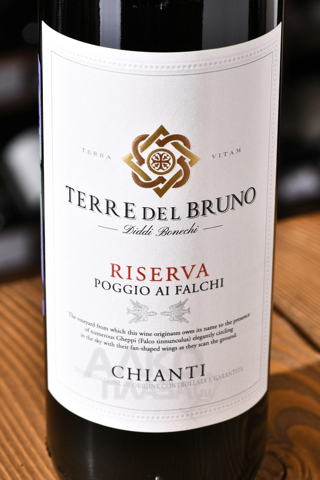 Красное сухое вино Terre del Bruno Chianti Riserva Poggio ai Falchi DOCG 0,75 л — выдержанное элитное Кьянти, созданное в рамках традиционных методик, но с использованием современного оборудования. В его характере ярко отражается уникальность знаменитого тосканского терруара. Для производства использовался урожай 2019 года, который был отмечен как удачный, несмотря на прохладную дождливую весну, из-за чего затянулось цветение винограда. Однако ситуацию исправило сухое и теплое лето. Ночью периодически фиксировалось значительное понижение температуры, что самым благоприятным образом сказалось на органолептике сырья. Сорт Санджовезе (средний возраст лоз 20 лет) собирали вручную во вторую декаду сентября. Ягоды отделили от веточек, мягко прессовали, сусло мацерировали 15 дней на мезге, затем ферментировали в стали 4 месяца. Вино 16 месяцев выдерживали в старых и новых больших дубовых бочках, а после бутилирования оставили «отдыхать» на 10 месяцев в подвалах винодельни.