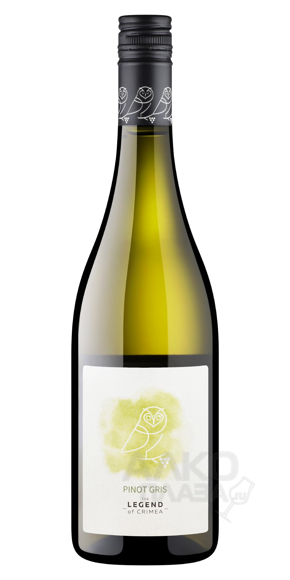 Белое сухое вино The Legend of Crimea Pinot Gris 0,75 л производится из урожаев, выращиваемых в Крыму, в Сакском районе. Лозы выращивают на 550 га между сёлами Яркое и Геройское, в солнечном тёплом климате вблизи Черноморского побережья на степных почвах. В производстве применяют ферментацию в стальных чанах при низкой температуре без яблочно-молочного брожения. Далее следует выдержка в стали в течение полугода.