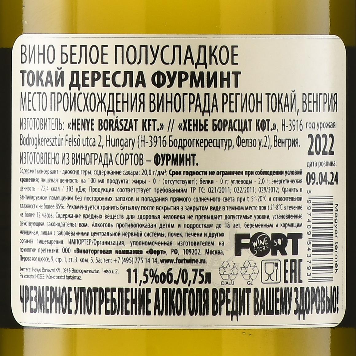 Tokaji Furmint Dereszla - вино Дересла Токай Фурминт 0.75 л белое полусладкое