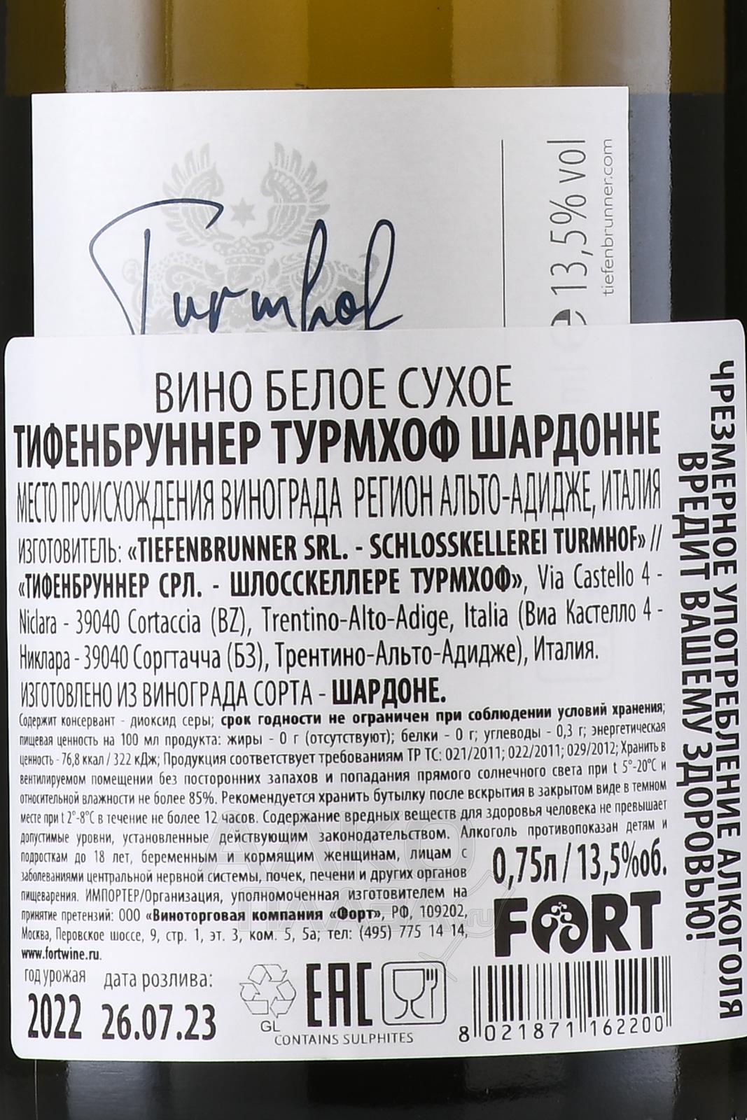 Tiefenbrunner Turmhof Chardonnay - вино Тифенбруннер Турмхоф Шардонне 0.75 л белое сухое